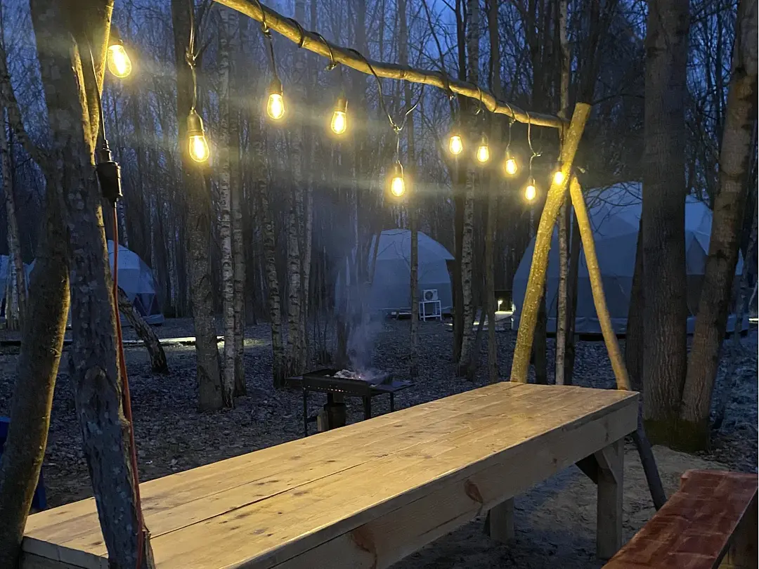 Глэмпинг «Озеро Ле» — это возможность насладиться гармонией с природой в условиях максимального комфорта. Расположенный на берегу Лебяжьего озера в городе Дубна, он предлагает 10 уютных домиков-сфер, названных в честь красивейших озер нашей страны.