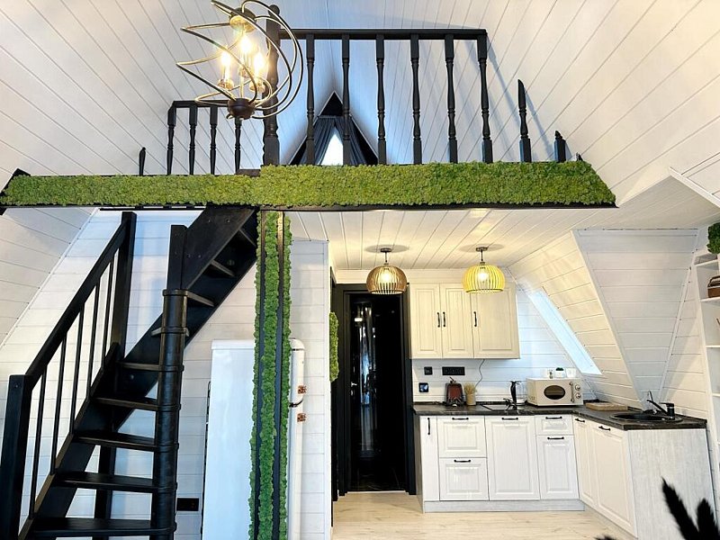 Два современных домика оснащены комфортабельной мебелью и техникой для насыщенного загородного отдыха. В распоряжении гостей лаундж зоны, терраса с удобными креслами, уютные спальные места и ванные комнаты с душевыми.