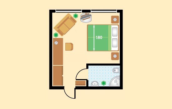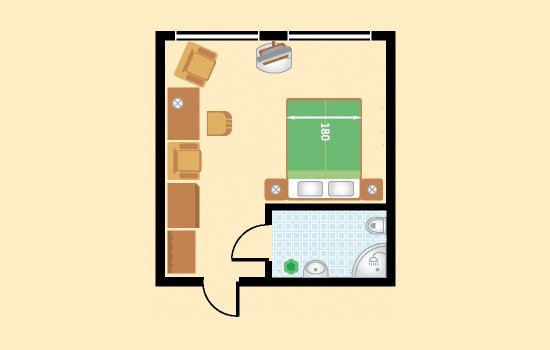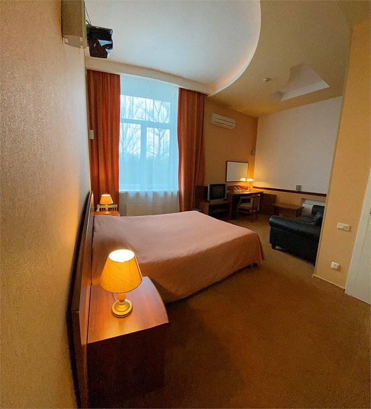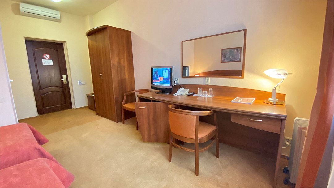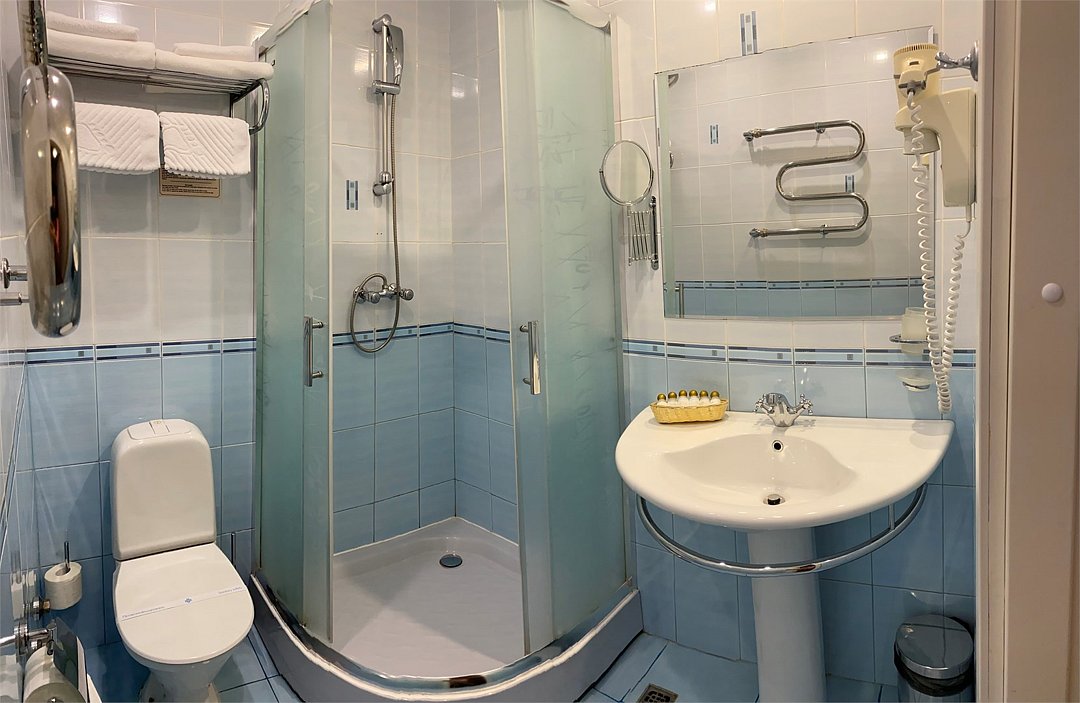 телевизор, Wi-Fi, телефон, фен, электронные замки, ванная комната, душевая кабина, банные полотенца, односпальная кровать, шкаф для одежды, багажная тумба, мини-бар, сейф, ковровое покрытие, кулер на этаже, вид во двор, меню подушек, стул, стол, гостиничная парфюмерия, без питомцевВ номере