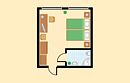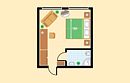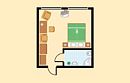кабельное телевидение, Wi-Fi, телефон, фен, электронные замки, двуспальная кровать, шкаф для одежды, мини-бар, сейф, общая ванная комната, вид во двор, меню подушек, стаканы, стул, стол, номер для некурящих, без питомцевВ номере
