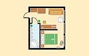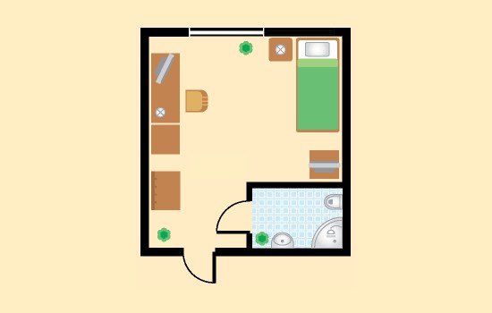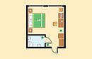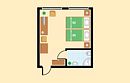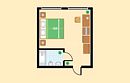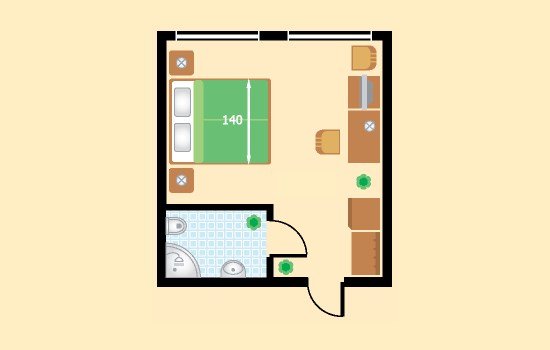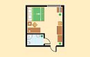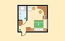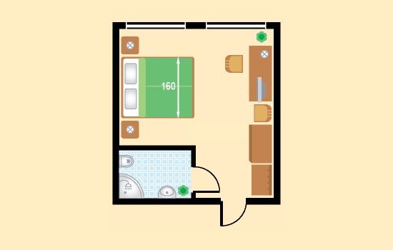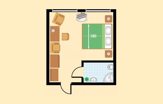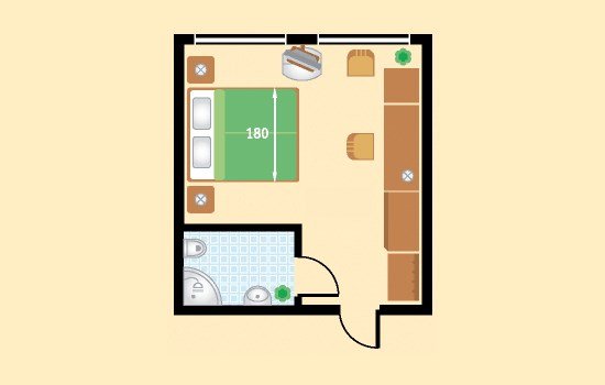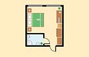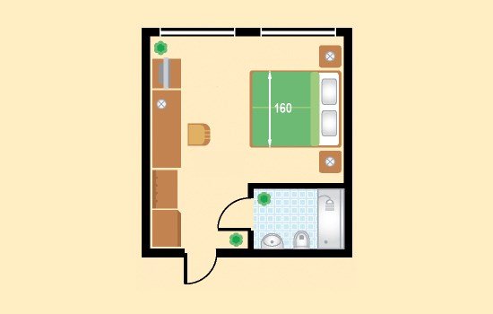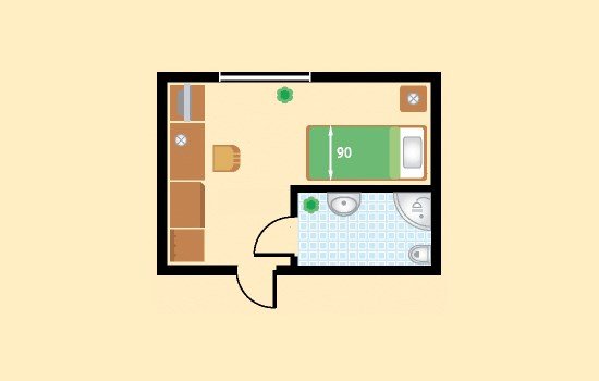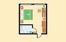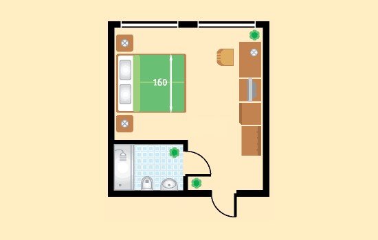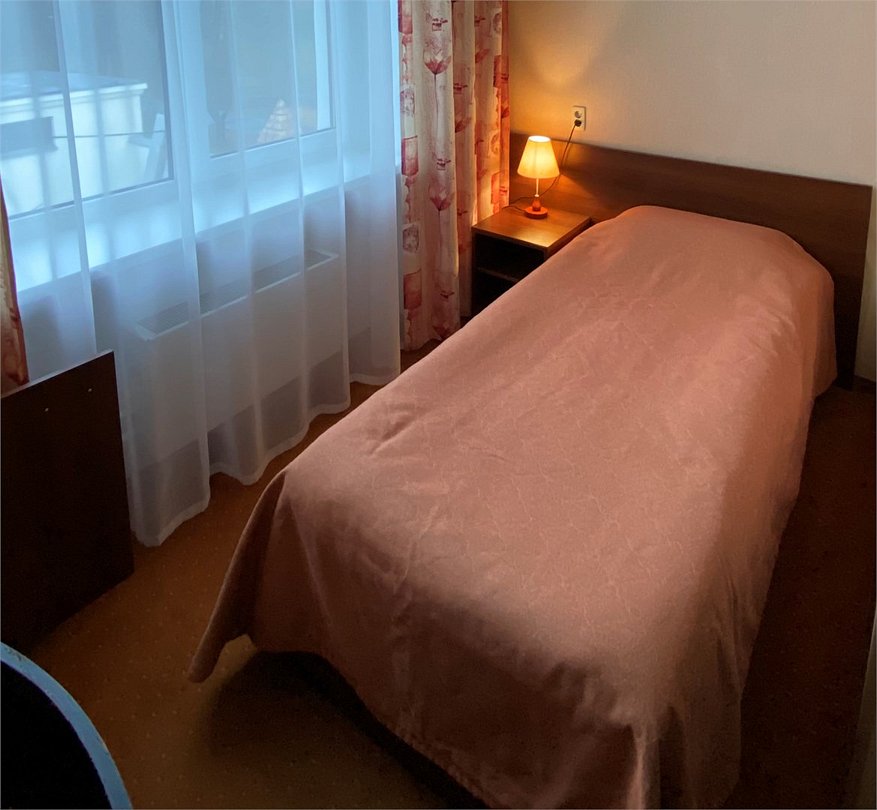 кабельное телевидение, Wi-Fi, телефон, фен, электронные замки, гигиенические средства, односпальная кровать, мини-бар, сейф, ковровое покрытие, общая ванная комната, вид во двор, меню подушек, стаканы, стул, стол, без питомцевВ номере