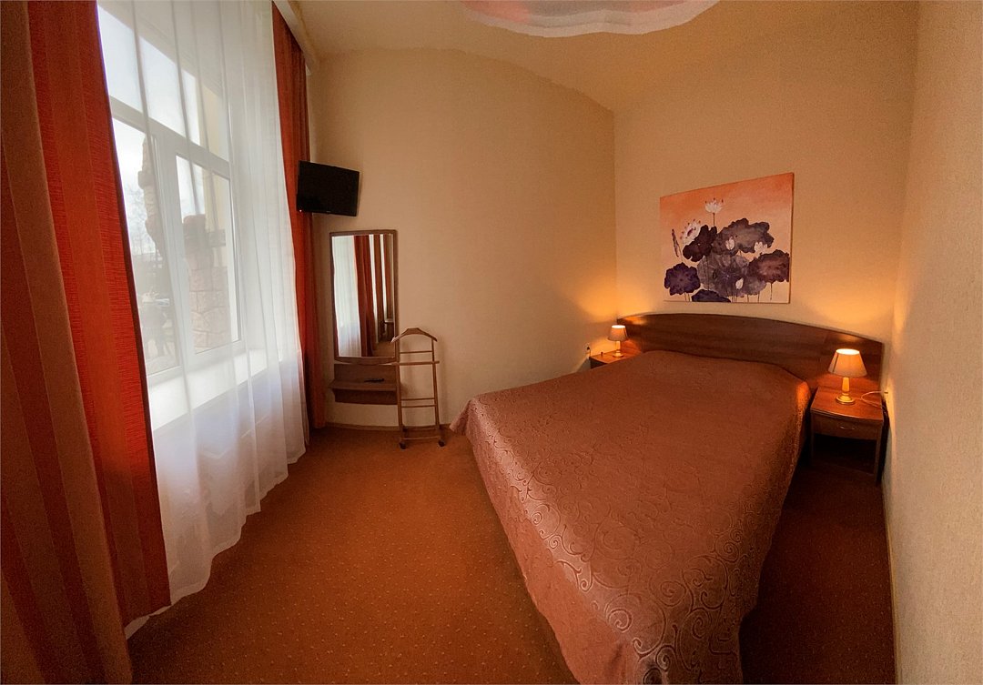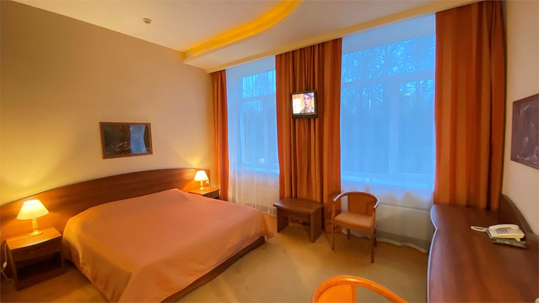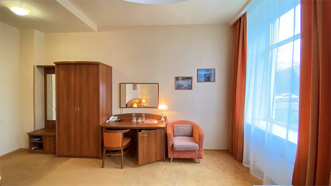 телевизор, Wi-Fi, телефон, фен, электронные замки, ванная комната, душевая кабина, банные полотенца, полутораспальная кровать, шкаф для одежды, багажная тумба, мини-бар, сейф, ковровое покрытие, кулер на этаже, вид во двор, меню подушек, стул, стол, без питомцевВ номере