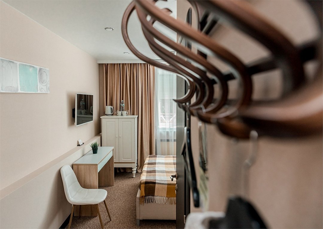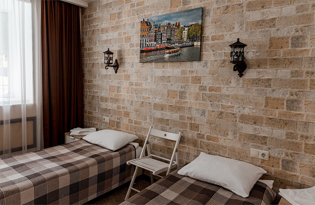 Wi-Fi, холодильник, светильник, фен, микроволновая печь, утюг, обогреватель, душевая кабина, банные полотенца, косметические средства, две полутораспальные кровати, гипоаллергенное белье, гладильная доска, ортопедический матрас, гардеробная, зеркало, эксклюзивная мебель, чайный набор, обслуживание номеров, минеральная вода, чайник, раковина, отопление, кулер на этаже, раздельный санузел, вид во двор, стаканы, туалетные средства, туалет, цифровое тв, телевизор с плоским экраном, без питомцевВ номере