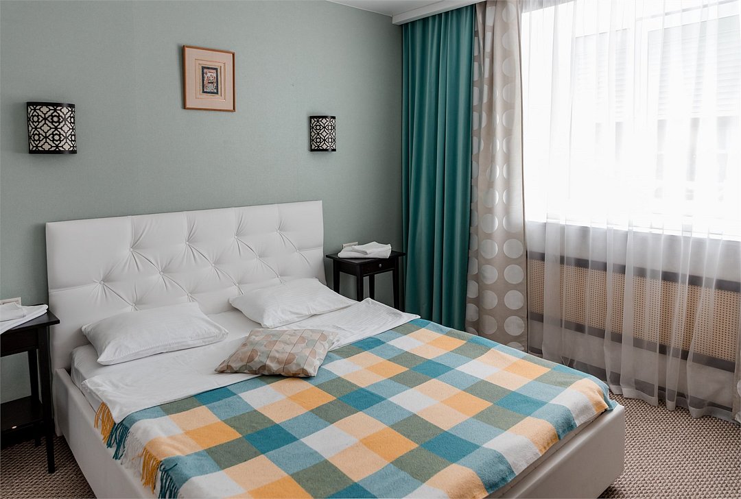 Wi-Fi, холодильник, светильник, фен, микроволновая печь, утюг, банные принадлежности, косметические средства, двуспальная кровать, гипоаллергенное белье, гладильная доска, ортопедический матрас, гардеробная, вешалки, зеркало, эксклюзивная мебель, чайный набор, обслуживание номеров, информационная карта, меню, чайник, унитаз, раковина, питьевая вода, отопление, душ, кулер на этаже, вид во двор, стаканы, туалетные средства, цифровое тв, телевизор с плоским экраном, номер для некурящих, без питомцевВ номере