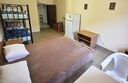 Двуспальная кровать, двухъярусная кровать, прикроватная тумбочка,напольная вешалка, журнальный столик, стул, ТВ, холодильник, кондиционер.