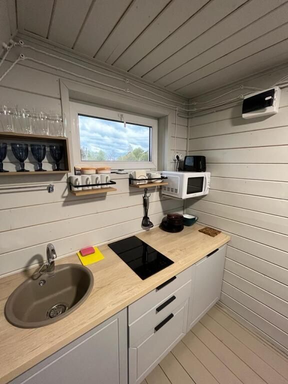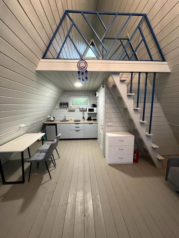 Шесть 1-этажных домиков 40 кв. м. с антресолью. Размещение 2-4 человека. Подходит для комфортного отдыха одной пары или пары с детьми. Спальня (мансардный этаж) с качественным двуспальным матрасом 180х200 см. , на первом этаже мягкий интерьерный диван (спальное место 140х190 см. ). В домике оборудована кухня с бытовой техникой и посудой. Ванная комната с туалетом, душевой кабиной, теплым полом и водонагревателем. Чистейшая фильтрованная вода. Качественное постельное бельё и комплект полотенец для каждого гостя.