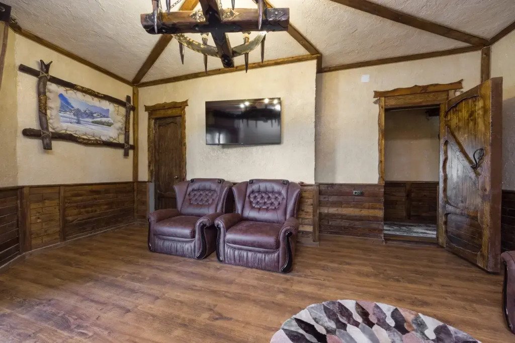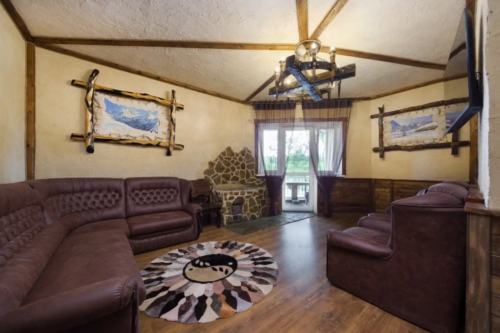Гостям предлагается расположиться в гостевом доме. На первом этаже расположены три номера, которые вмещают до восьми человек. Также здесь есть кухня и санузел. На втором — два двухместных номера, трехместный и четырёхместный. Каждый номер на втором этаже оснащен ванной комнатой. Также можно арендовать дом полностью. А для желающих уединиться имеется четырехместный охотничий домик с кухней, ванной комнатой и спальней.