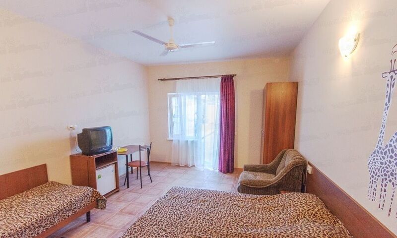В номере: кровати, кресло-кровать, стол, стул, шкаф/гардероб, тумбочки, телевизор, холодильник, вентилятор потолочный, душ, туалет.
