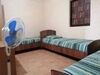 Двуспальная кровать и две односпальные кровати, мебельный гарнитур, тумбочки прикроватные, холодильник, кондиционер, телевизор, свой санузел (душ+туалет).