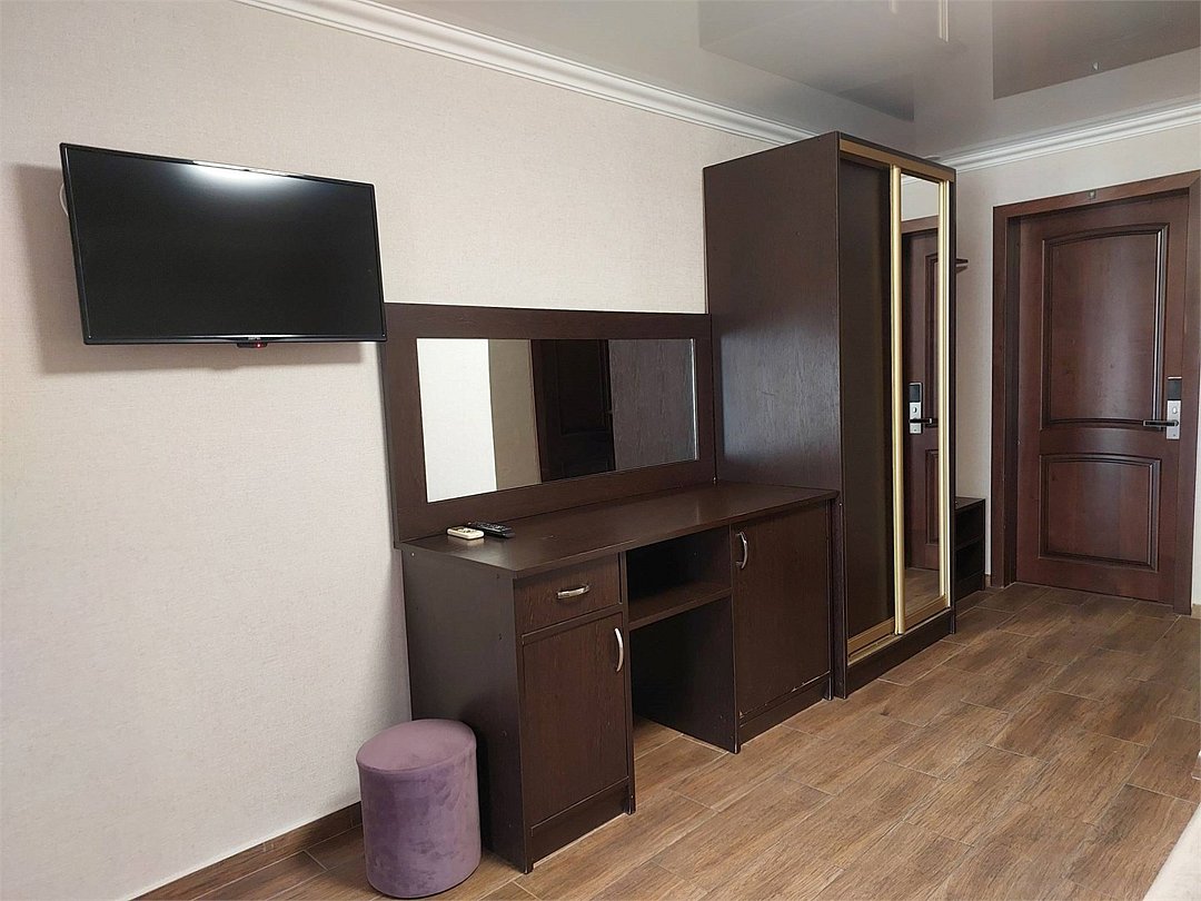Wi-Fi, светильник, фен, обогреватель, душевая кабина, санузел, банные полотенца, тапочки, две односпальные или большая двуспальная кровать, письменный стол, зеркало, пуфики, обслуживание номеров, унитаз, раковина, вид на реку, ламинат, туалетный столик, тумба, туалетный столик, туалетные средства, туалет, сплит-система, диван-кровать, мини-холодильник, шкаф-купе, телевизор со Smart TV, номер для некурящих, рабочий стол, мыло, затемняющая штора, можно с питомцамиВ гостиничном номере