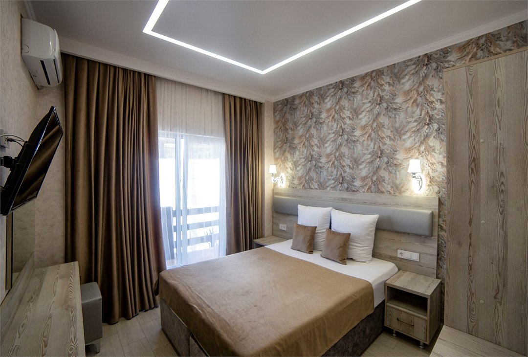 Трехместный комфортный номер площадью 25 кв.м с видом на море. Подходит для размещения 4 человек. Имеет спальню с приятным интерьером. В номере: 1 двуспальная кровать, 1 односпальная кровать и 1 односпальный диван. Имеется телевизор, кондиционер, шкаф, вешалка, рабочий стол, стулья, холодильник. Индивидуальная ванная комната: душ, раковина, туалет. В стоимость входит: Постельное бельё, полотенца, мыло. WI-Fi бесплатно на всей территории. Бесплатная общественная парковка на территорией.Услуги и удобства