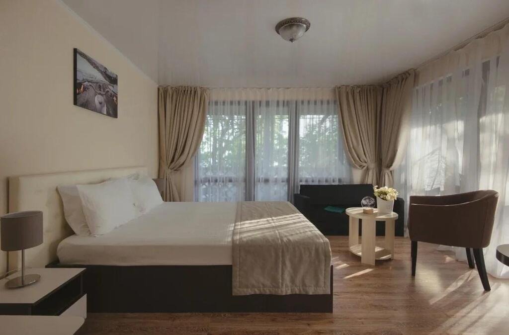 Номер уютно обставлен и оснащён необходимым, чтобы отдохнуть после долгого и насыщенного дня. Имеются телевизор и халат. Перечисленные услуги есть не во всех номерах.
