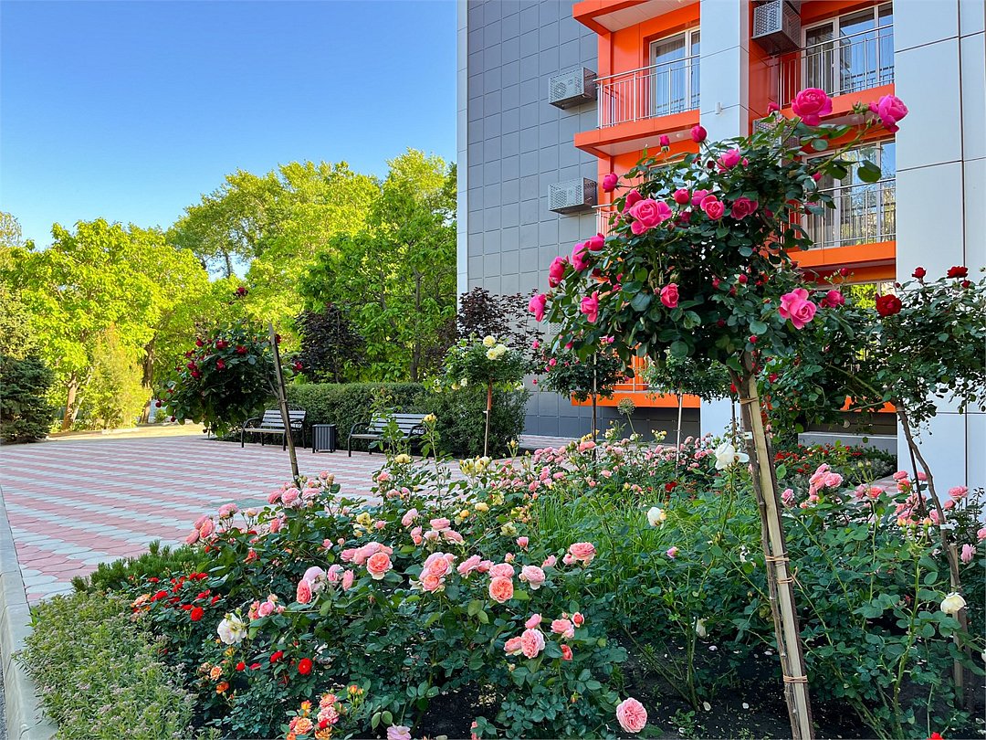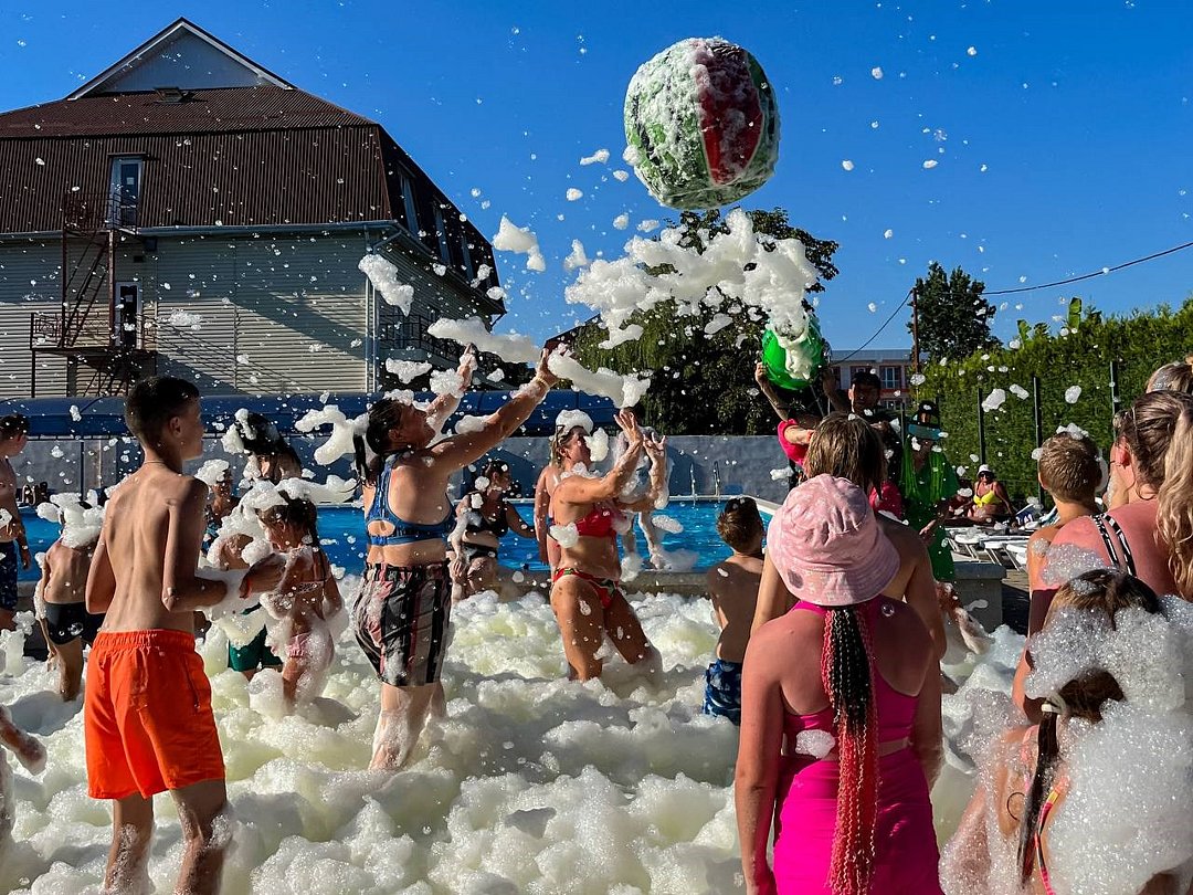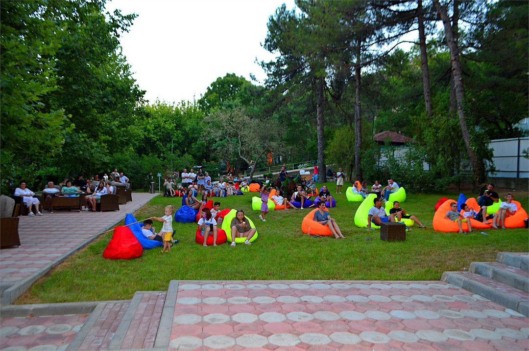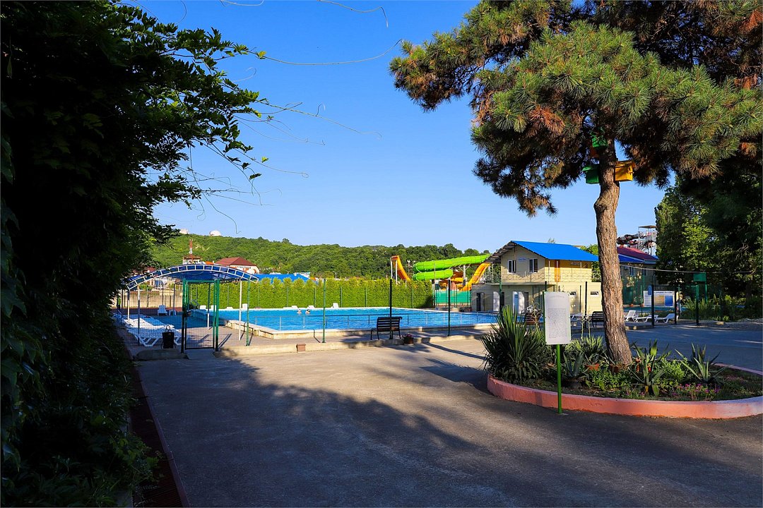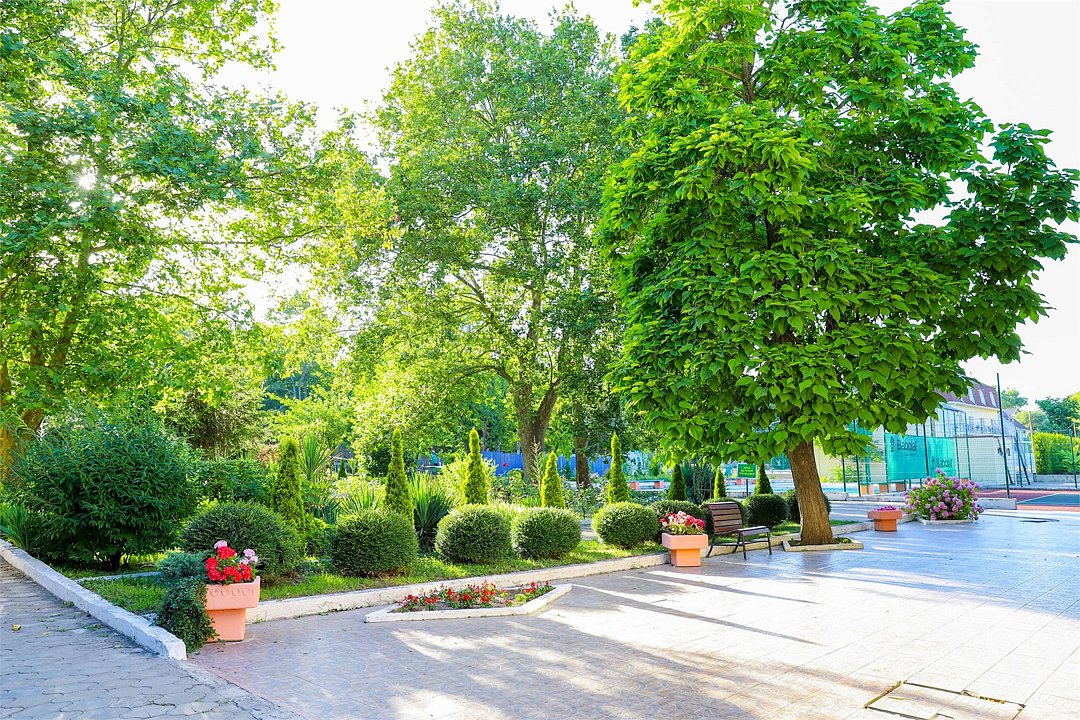 Развитая инфраструктура включает в себя эстрадную площадку для дневных и вечерних анимационных программ, зоны отдыха, детские и спортивные площадки, а также тренажерный зал. Территория облагороженная, вся в зелени и цветах. Есть бассейн и терраса для загара и зонтики от яркого солнца. Также можно искупаться в море, которое находится в 0,6 км. Поблизости есть аквапарк.