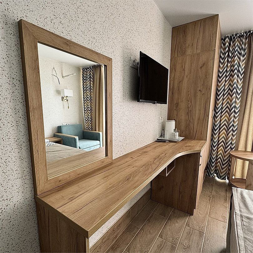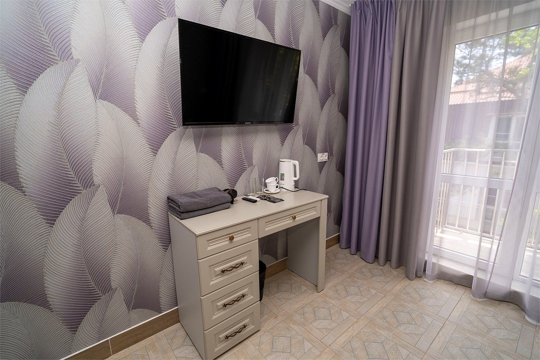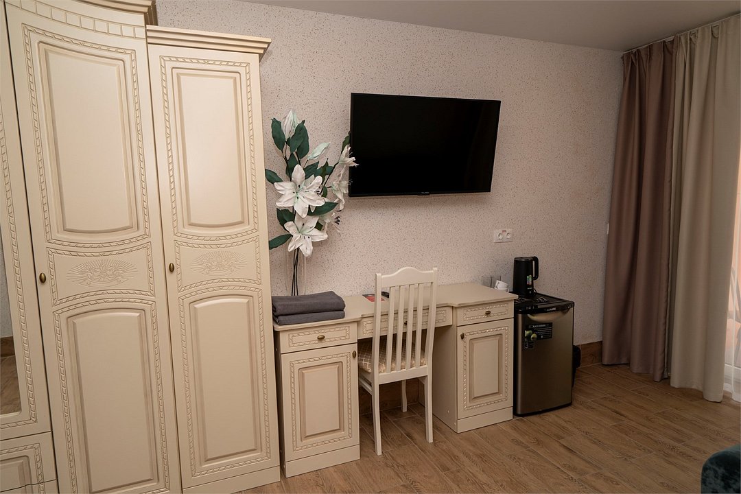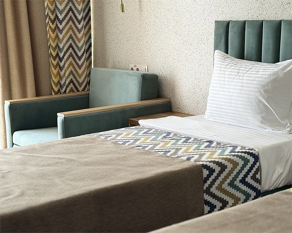 Комфортные и элегантные номера с видом на парковую зону. В номере предусмотрена модульная система кроватей, по желанию можно объединить два спальных места в одно. В номере установлено дополнительное место (кресло). Номер оснащен спутниковым TV, кондиционером, холодильником. В ванной комнате есть фен, набор полотенец для каждого гостя и необходимые гигиенические принадлежности.Услуги и удобства