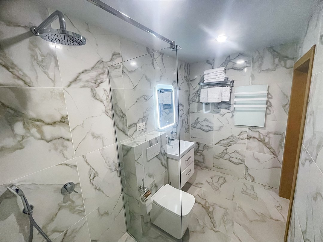 телевизор, кабельное телевидение, Wi-Fi, кондиционер, светильник, фен, ванная комната, душевая кабина, банные принадлежности, халаты, пляжные полотенца, тапочки, терраса, двуспальная кровать, тумбы, шкаф для одежды, журнальный столик, чайный набор, сейф, чайник, питьевая вода, стаканы, туалетные средства, сплит-система, сушилка для белья, цифровое тв, мини-холодильник, кресло-кровать, чайная станция, двуспальный раскладной диван-кровать, уборка номера, вешалки-плечики, бутилированная вода, мыло, можно с питомцами, миска, тропический душВ гостиничном номере