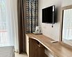 спутниковое телевидение, Wi-Fi, холодильник, светильник, фен, электронные замки, душевая кабина, санузел, банные полотенца, гигиенические средства, балкон, полутораспальная кровать, шкаф для одежды, вешалки, письменный стол, зеркало, чайный набор, чайник, стул, тумба, туалет, сплит-система, вид на парк, сушилка для белья, цифровое тв, внутренний телефон, уборка номера, услуги прачечной (платно), можно с питомцамиВ гостиничном номере