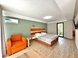 Новый корпус, рядом с бассейном №2 и баром. Номера расположены в 4 корпусе 1 этаже с дополнительным выходом в бассейновую зону. Варианты размещения на основных местах: двухспальная кровать или две раздельные односпальные кровати.Услуги и удобства