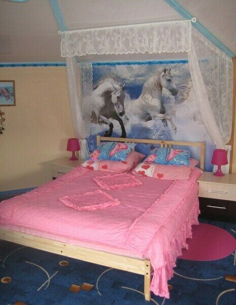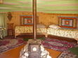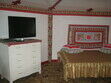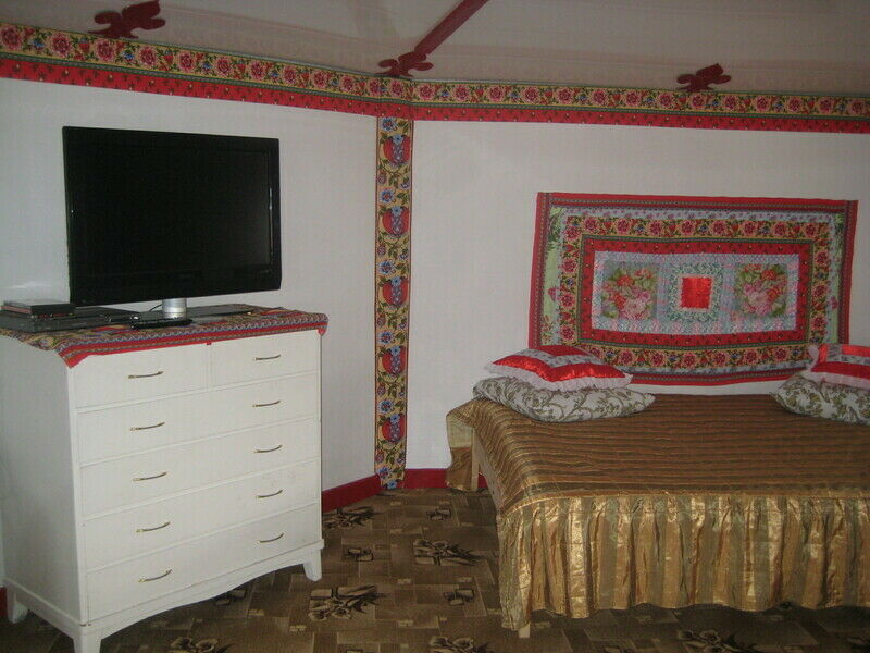 Две 2-х спальных кровати, два кресло-кровати, стол, стулья, тумба для вещей, телевизор,DVD, этажерка с необходимой посудой, полотенца, чайник, зеркало, умывальник-раковина, туалет унитаз, кирпичная печь, электричество, на полу теплое ковровое покрытие. Другая юрта 6 местная. В ней имеются 4 односпальных кровати и 2-х местный диванчик,стол, стулья,полочка с посудой,телевизор с DVD, ковры, умывальник-раковина,зеркало, туалет-биотуалет, железная топочная печь,электричество.