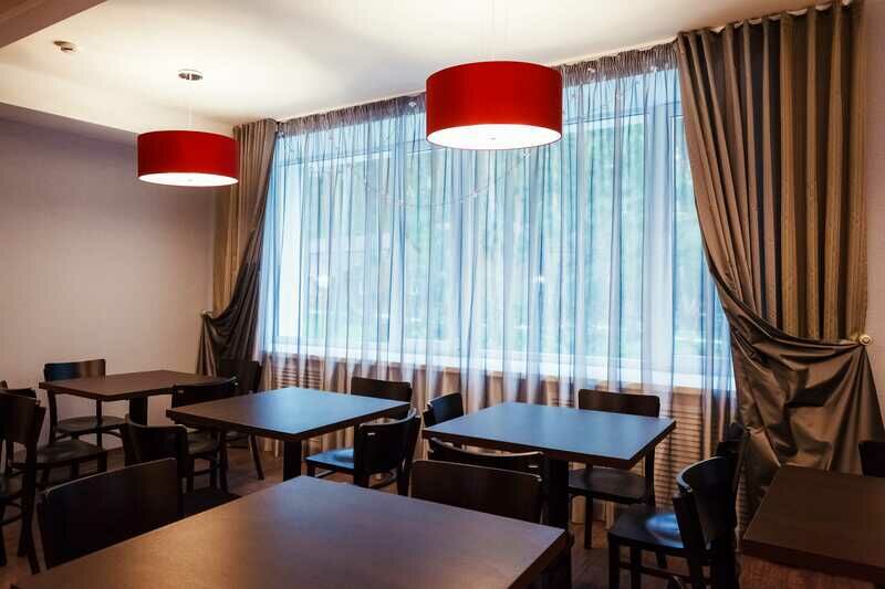 В ресторане отеля можно заказать вкусные блюда, также предлагается комплексное питание.