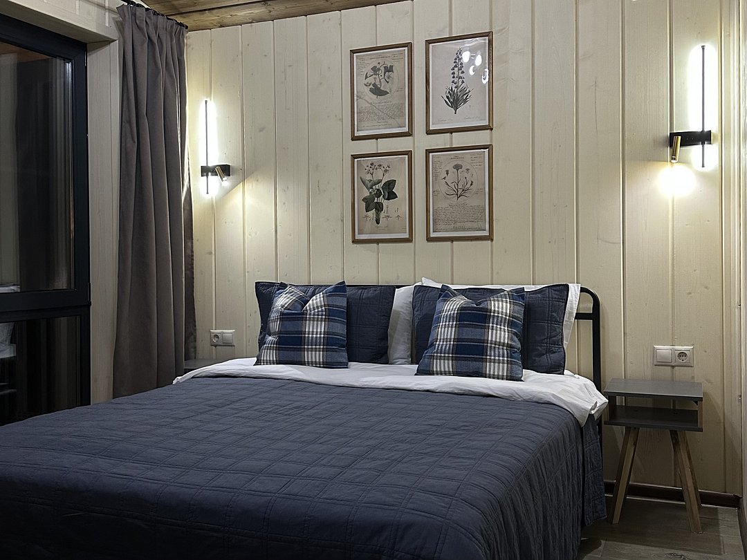 Для удобства гостей предусмотрено два раздельных санузла, оснащенных ванной, душем и удобствами, включающими мягкие полотенца, наборы туалетных принадлежностей и средства личной гигиены. Особенное удовольствие подарит гостям посещение купели, а также домашней сауны с заранее подготовленными вениками и простынями, способствующими полному расслаблению и восстановлению сил.