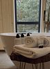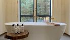 Дом оснащен двумя санузлами, в одном из которых находится ванная с панорамным видом на лес, а в другом — комфортный душ с обливной системой «ливень», также есть все банные принадлежности: фен, зубная паста, шампуни, гели для душа, мыло, ватные диски и палочки. Постельное белье (двуспальное с одним общим одеялом), комплект из двух полотенец на каждого, а также полотенца для рук и ног.