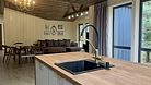 Дом оборудован тремя отдельными спальнями, каждая из которых имеет удобную мебель с ортопедическими матрасами, гарантирующими качественный сон. Дополнительное спальное место предоставляется благодаря раскладному дивану в гостиной комнате, где также расположена просторная кухня с современной техникой и всеми необходимыми кухонными принадлежностями, такими как индукционная плита, посудомоечная машина, духовка и даже капсульная кофемашина с функцией приготовления кофе с молоком.