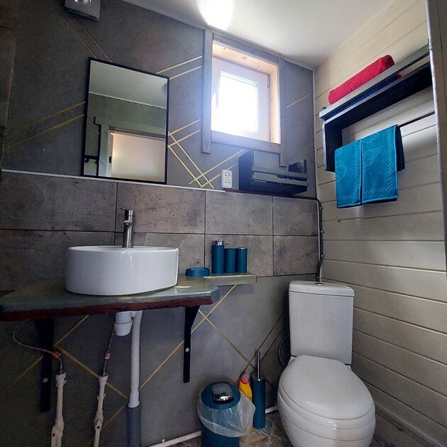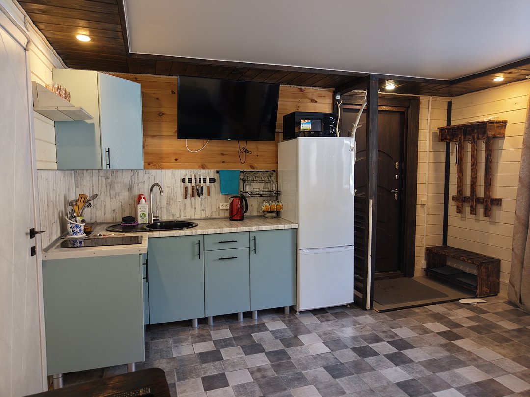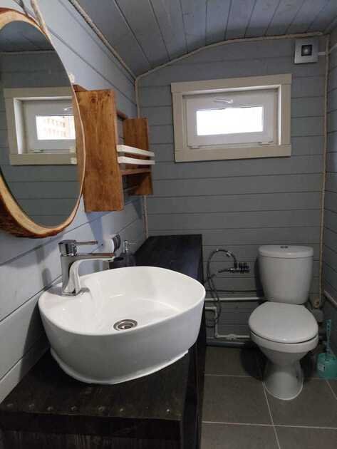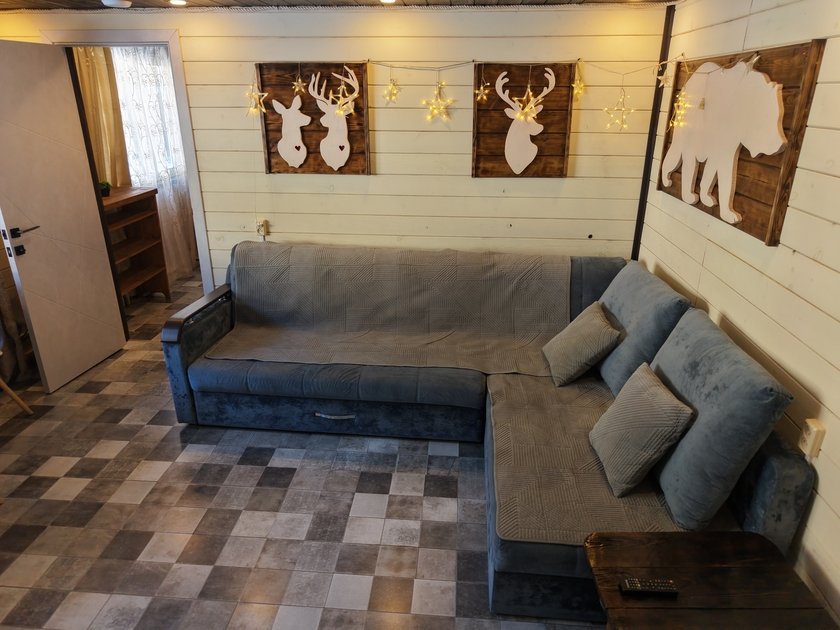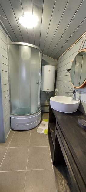 Oтопление в домике — теплые полы, что очень удобно, а главное, комфортно. Для проживания есть вся техника, посуда, ТВ, постельные принадлежности. Рядом с домиком — веранда, детская площадка, качели, мангальная зона и банька по желанию.