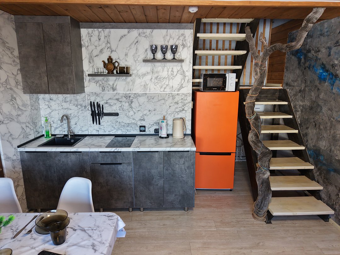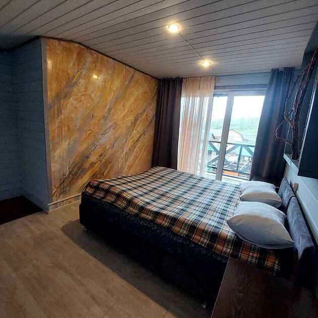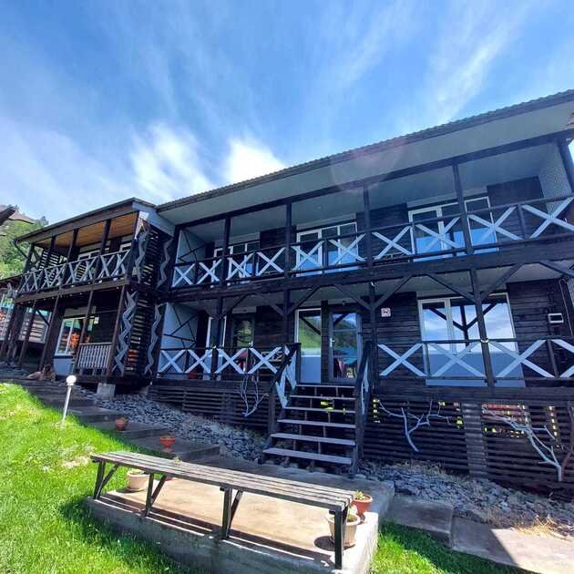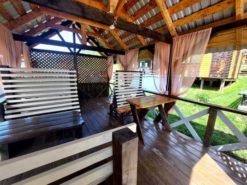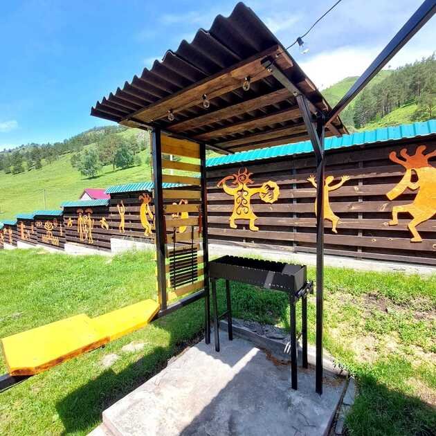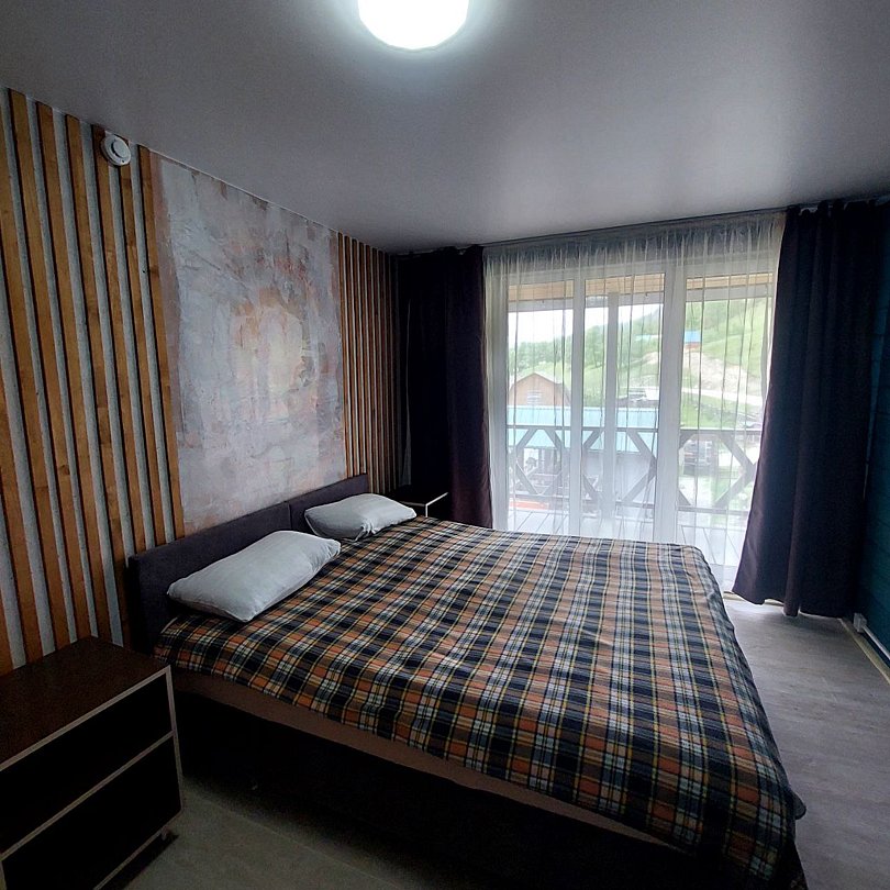 Тип: двухэтажные апартаменты, благоустроенные (санузел, душ, горячая и холодная вода) с кухней. Особенности: двухэтажные апартаменты с панорамными окнами, с собственной кухней, беседкой и мангальной зоной, спроектированные Hand made с нотками алтайской культуры.