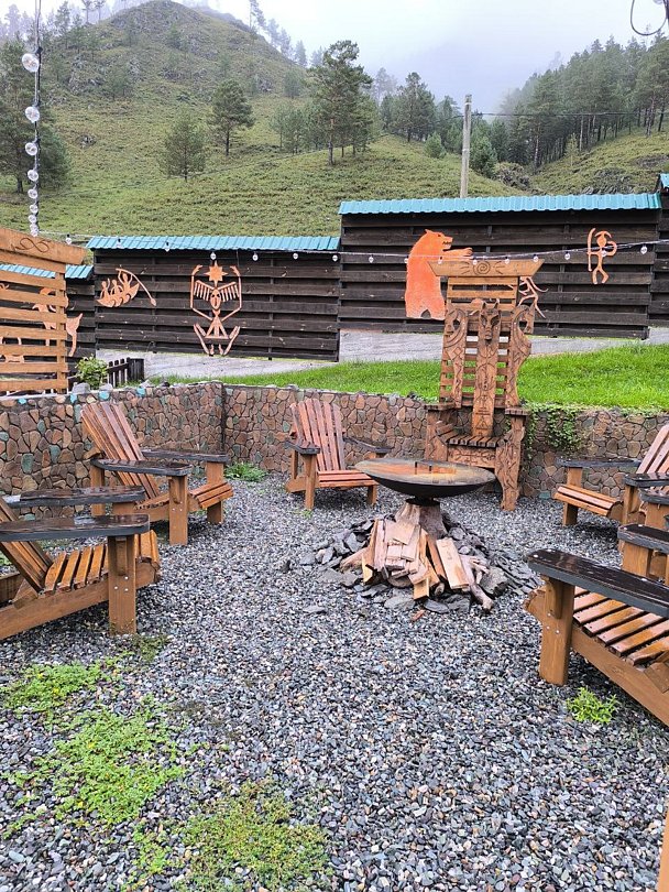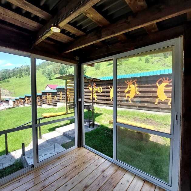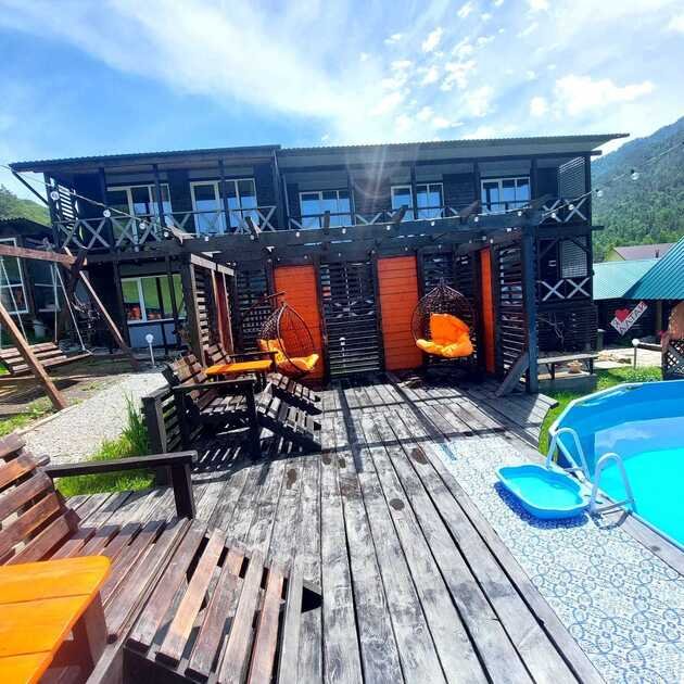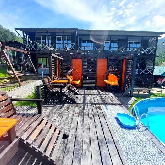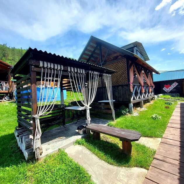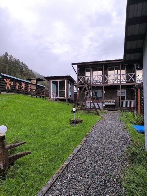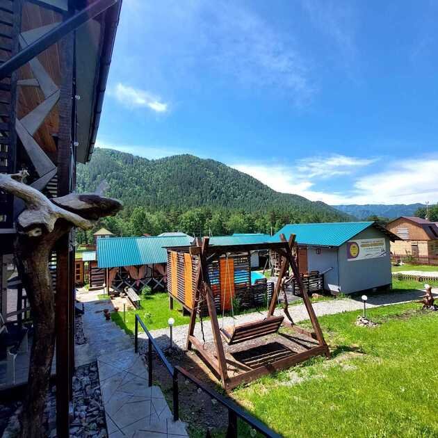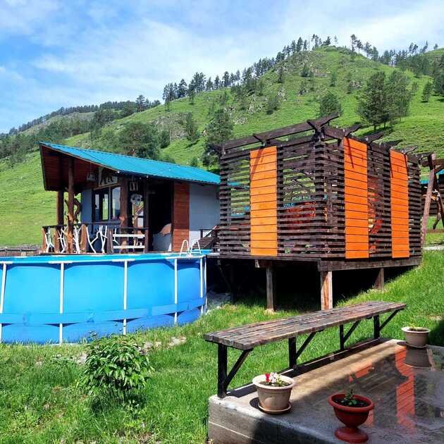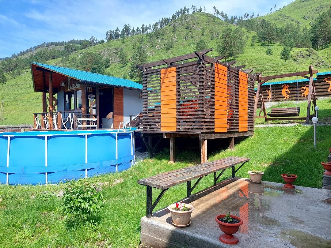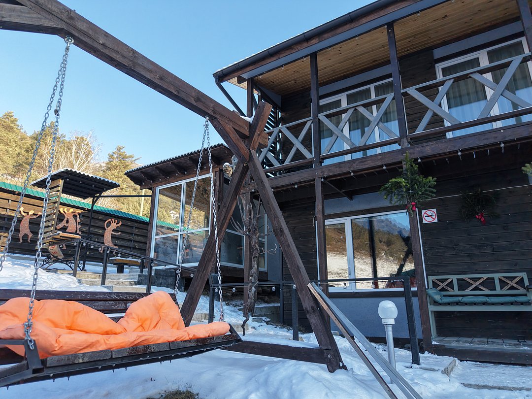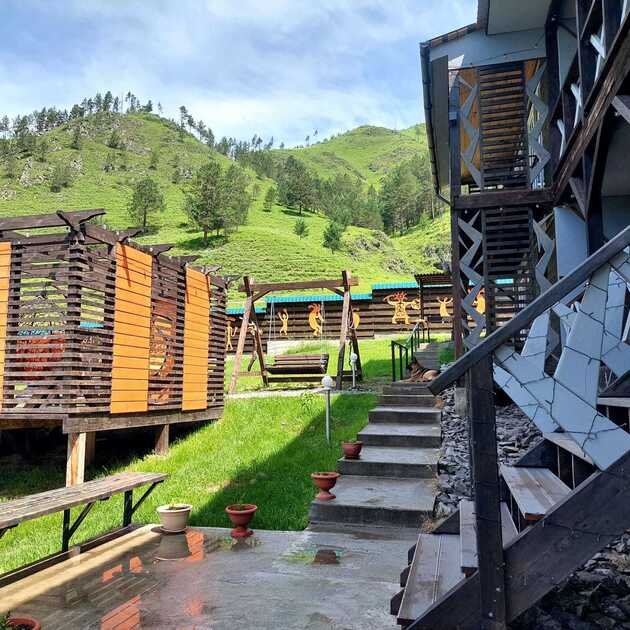 Тип: благоустроенные апартаменты (санузел, душ, горячая и холодная вода), летняя кухня на территории. Особенности: двухэтажные апартаменты с панорамными окнами, спроектированные Hand made с нотками алтайской культуры