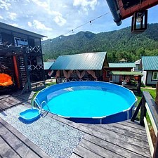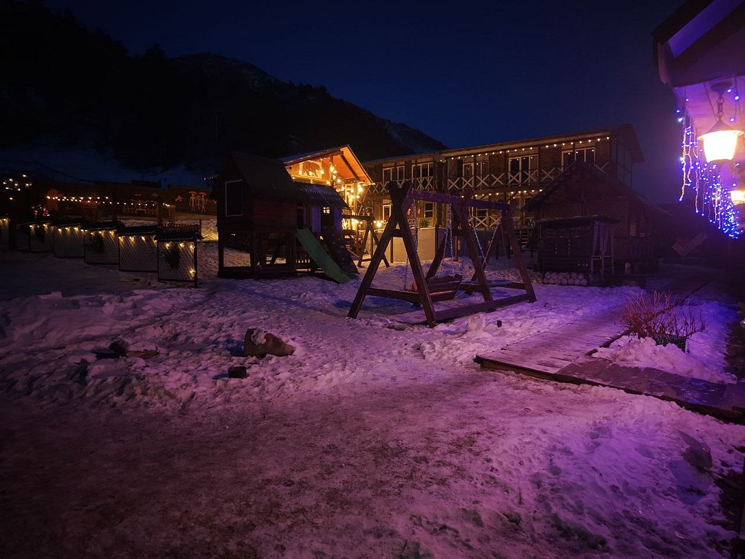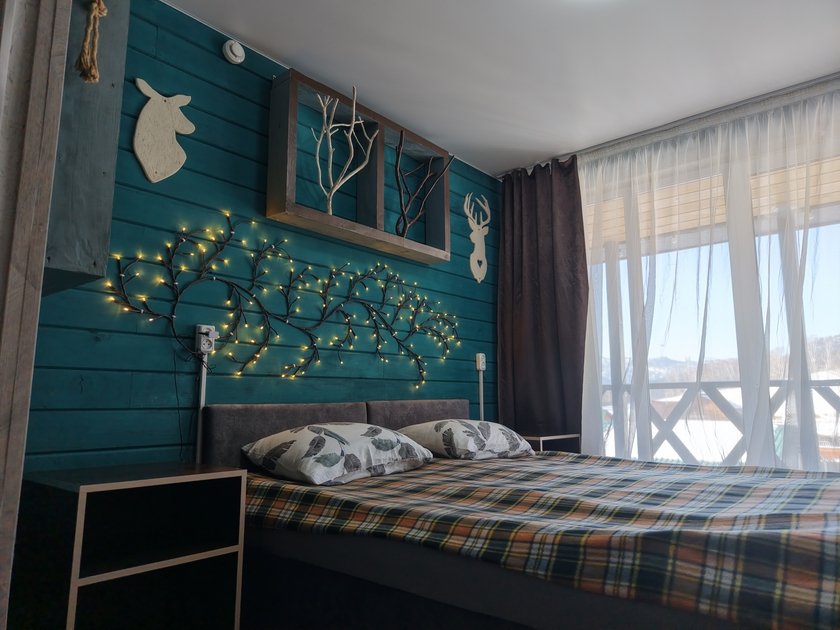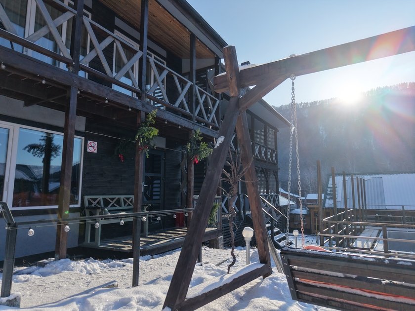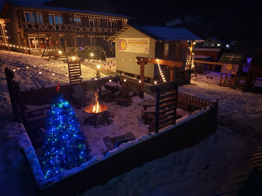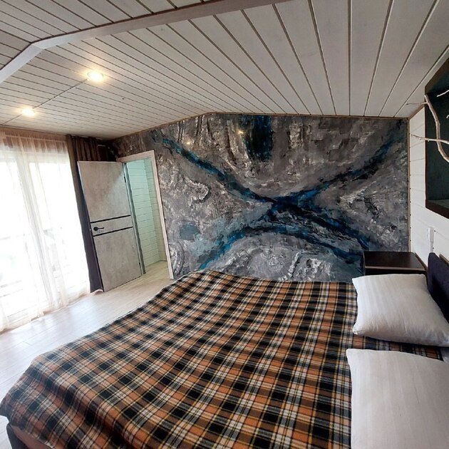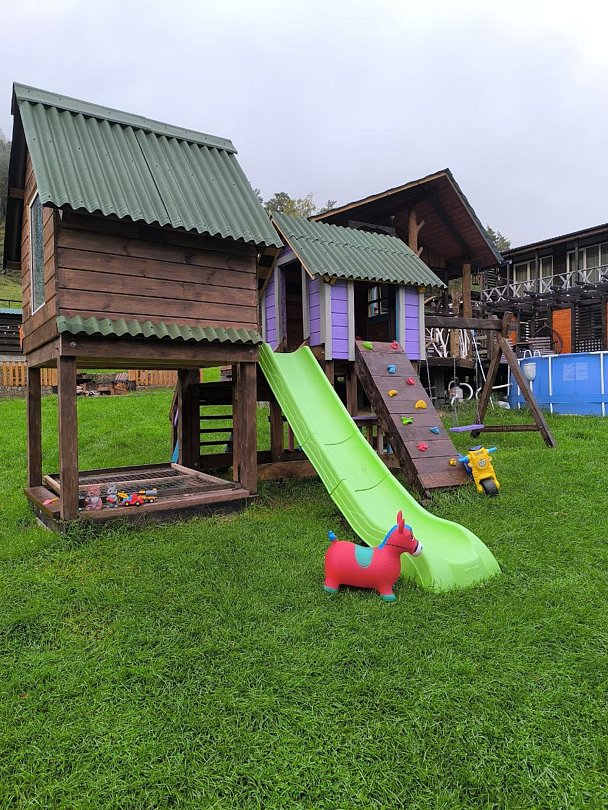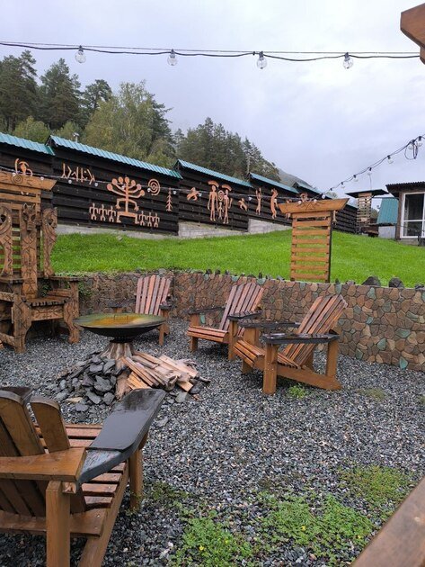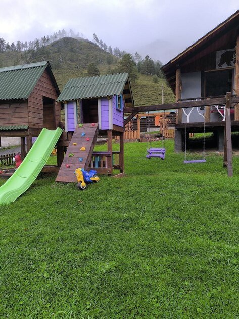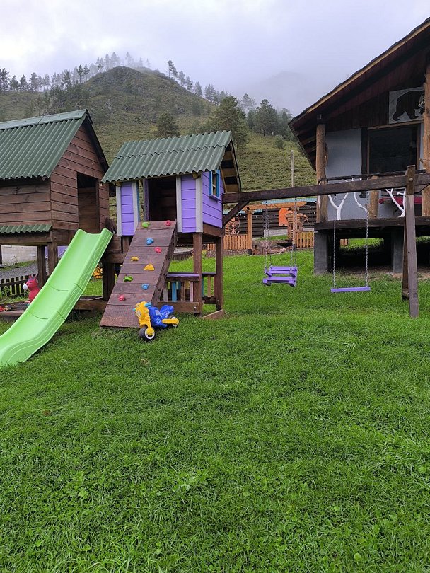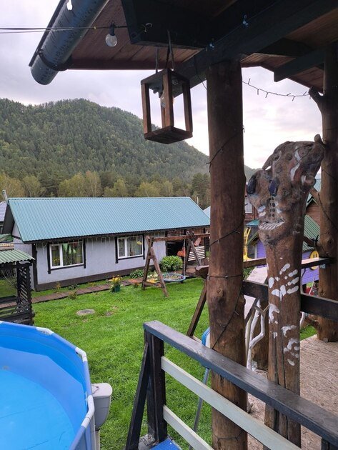 Тип: благоустроенные апартаменты (санузел, душ, горячая и холодная вода), летняя кухня на территории. Особенности: двухэтажные апартаменты с панорамными окнами, спроектированные Hand made с нотками алтайской культуры