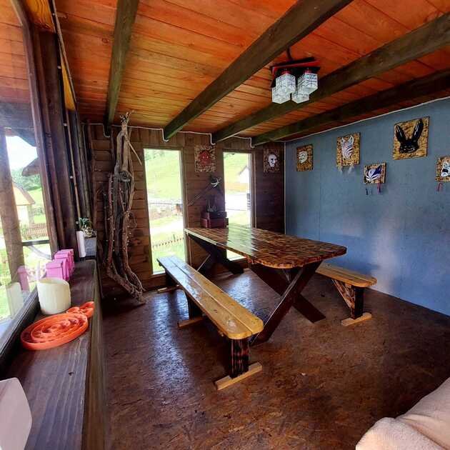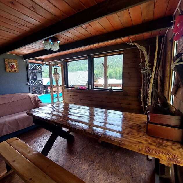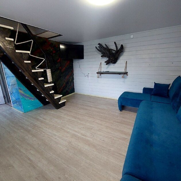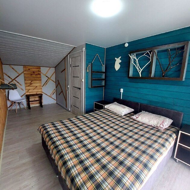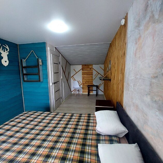 Тип: благоустроенные апартаменты (санузел, душ, горячая и холодная вода), летняя кухня на территории. Особенности: двухэтажные апартаменты с панорамными окнами, спроектированные Hand made с нотками алтайской культуры.