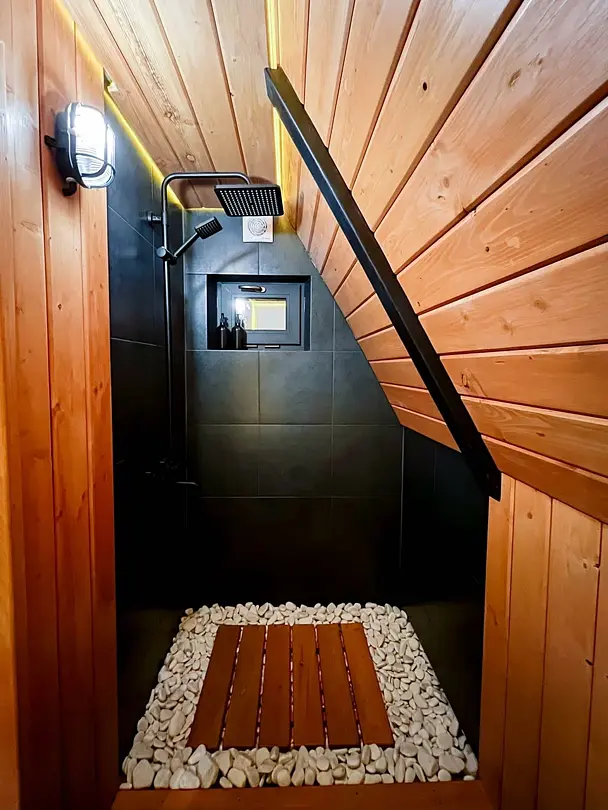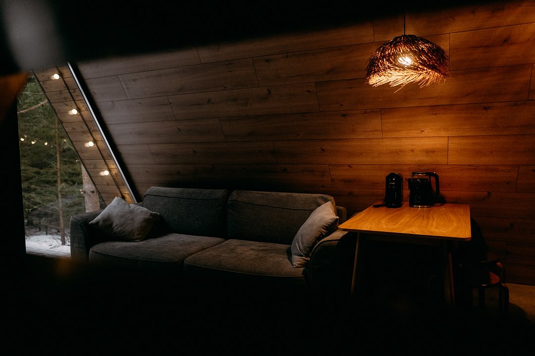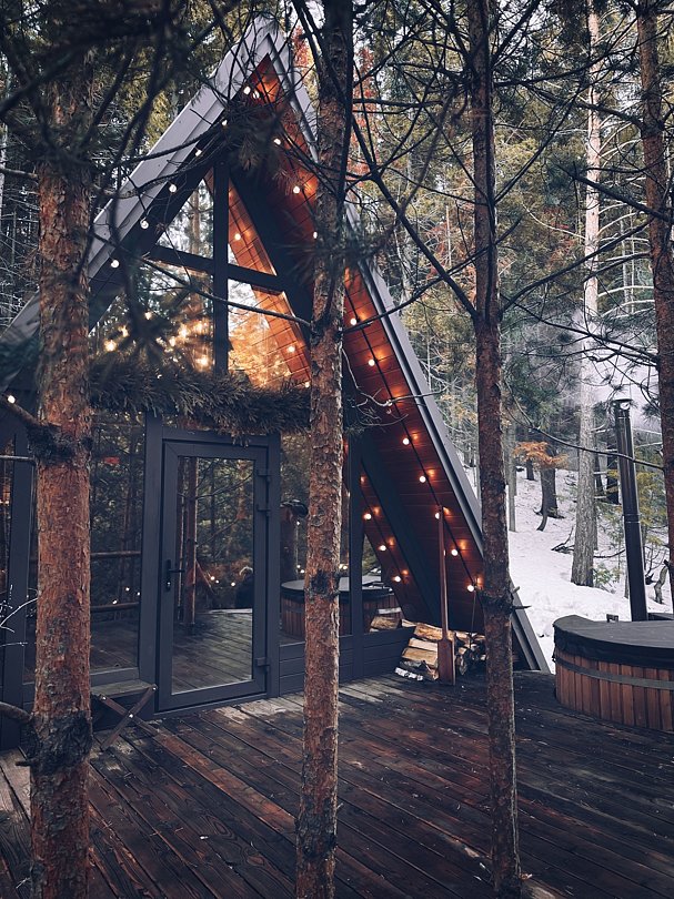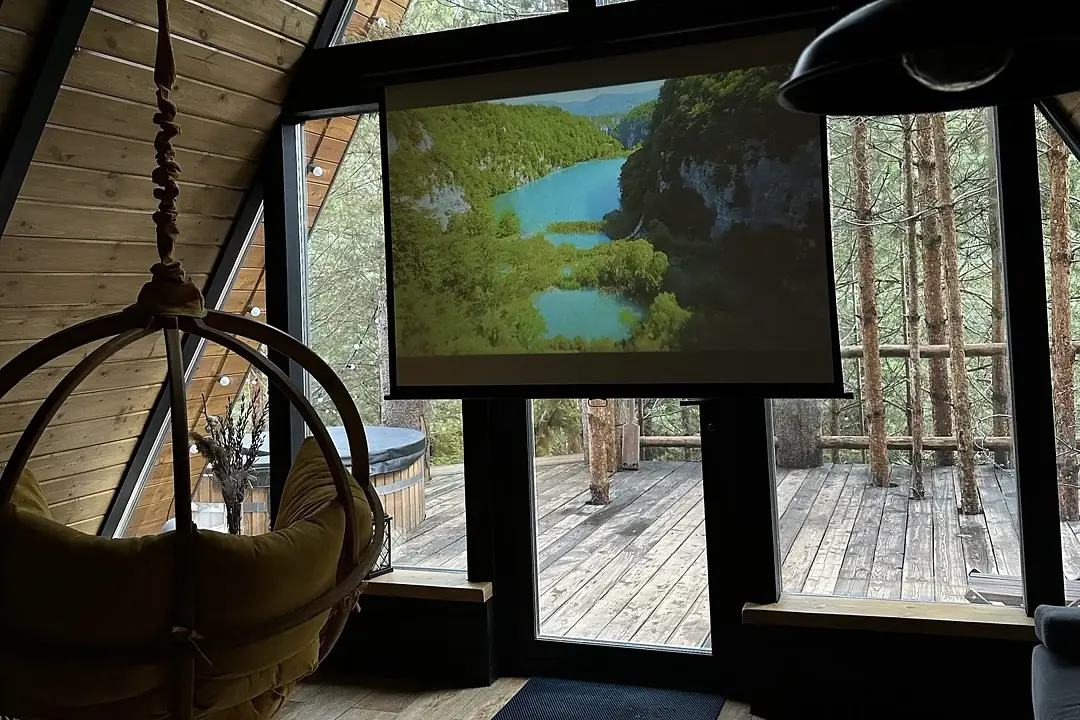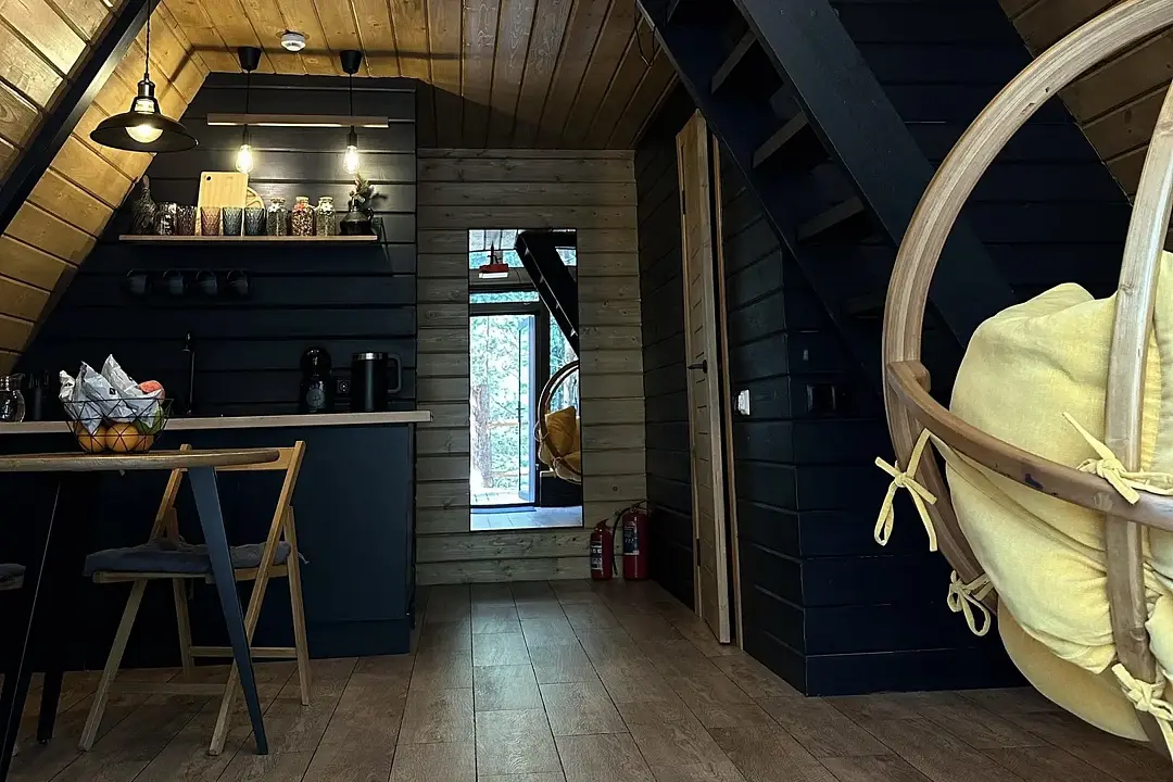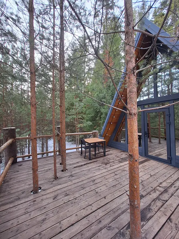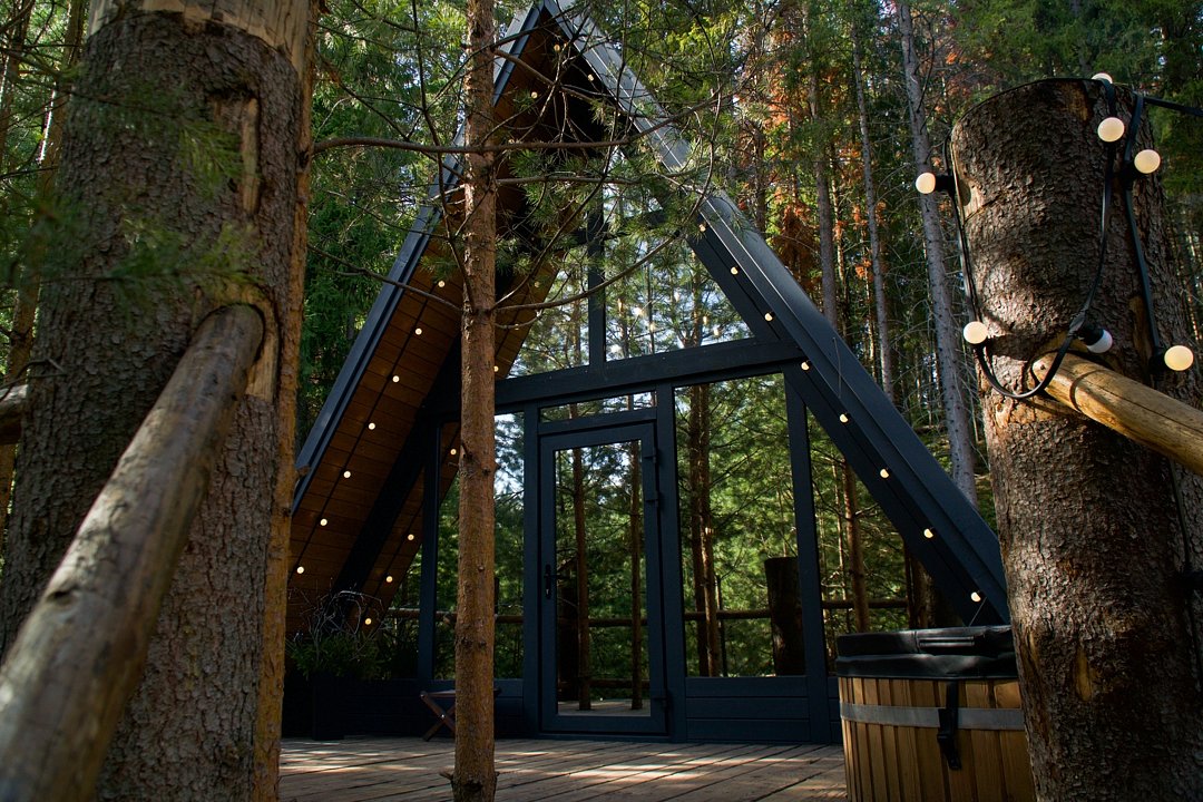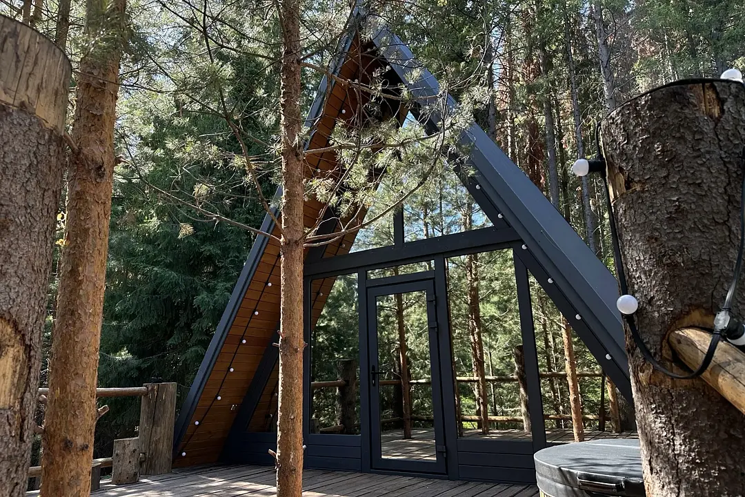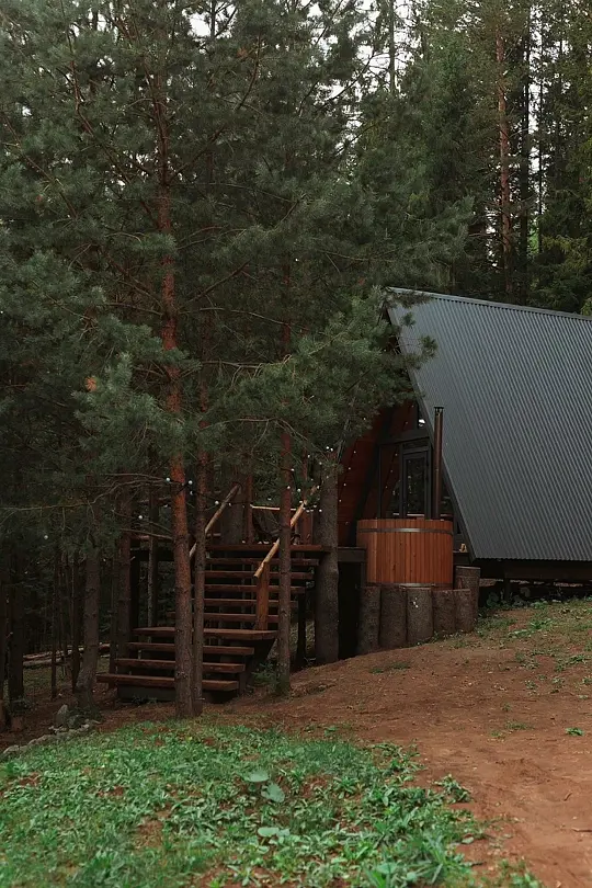 Проведите свой отдых, остановившись в уютном треугольном домике, выпаленном в современном стиле, и наслаждаясь окружающей природой и свежим лесным воздухом. В доме есть настольные игры, книги и проектор.