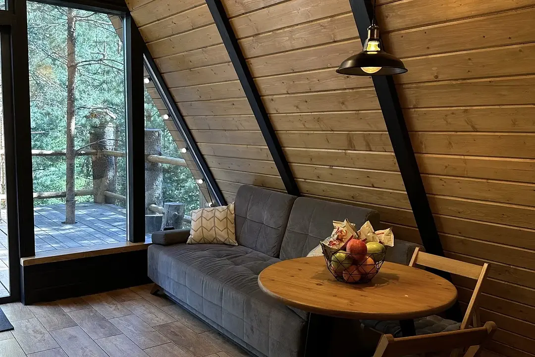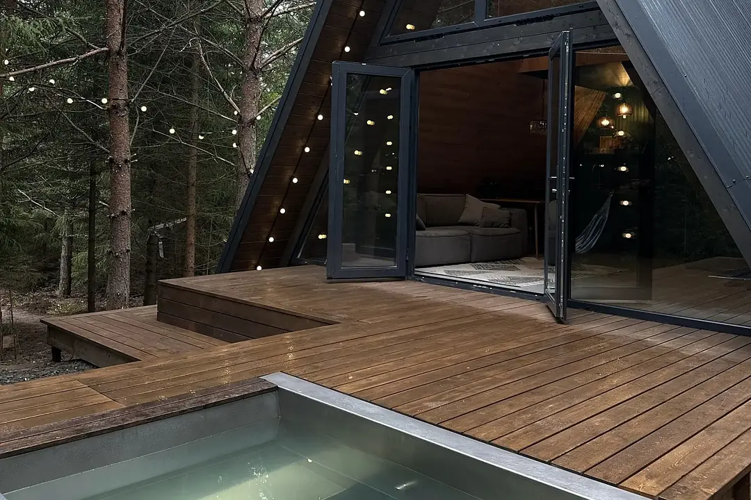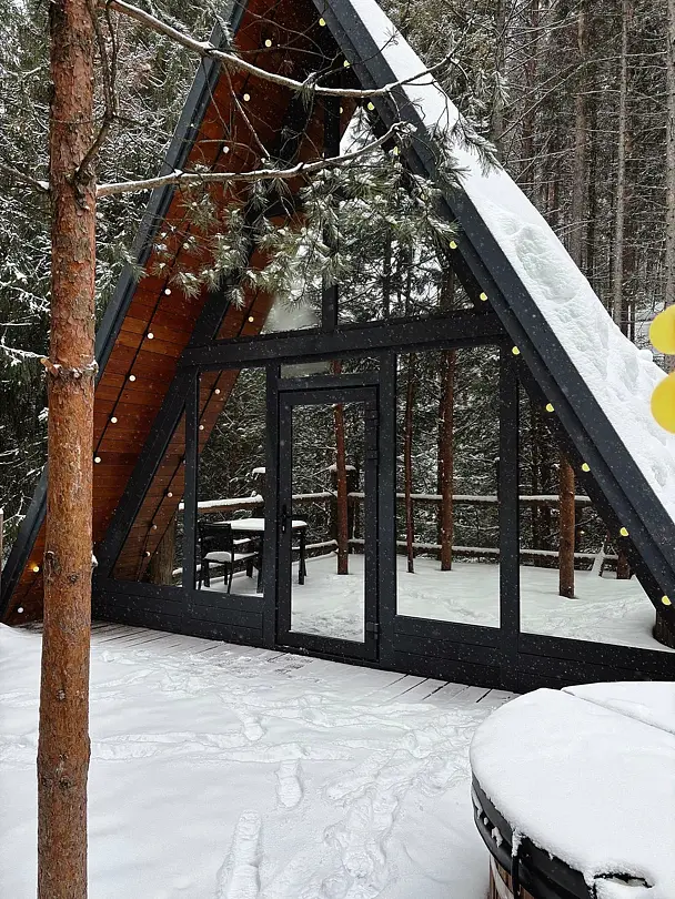 40 м2 · 2-х местный а-фрейм + 2 доп. места