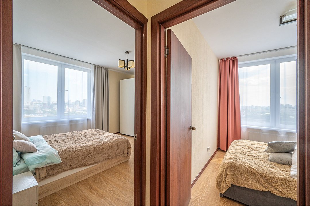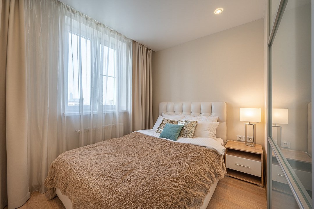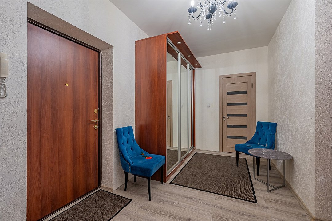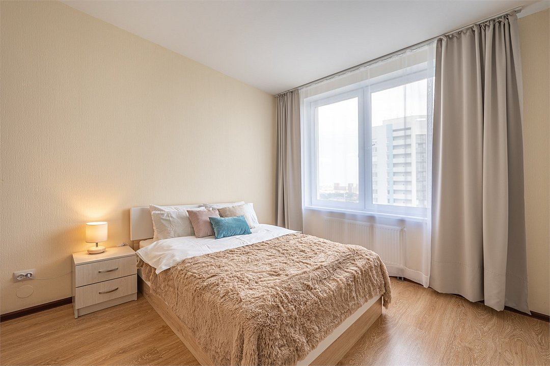 Апартаменты с двумя спальнями расположены на двадцатом этаже жилого комплекса "Стрелки" в Железнодорожном районе Екатеринбурга. Две изолированные спальни, просторная гостиная- кухня, балкон и ванная комната. В пешем доступе Ж/д вокзал, Северный автовокзал, УРГУПС, Управление Дороги и набережная реки Исеть. Детская и спортивные площадки во дворе, охраняемая парковка(в трехстах метрах от дома) и консьерж сделают Ваше пребывание у нас комфортным и безопасным. Современный ремонт с участием дизайнера - декоратора позволяет почувствовать домашний уют каждому гостю. В наличии вся необходимая мебель и техника: - двуспальные кровати с ортопедическим основанием и удобным матрасом ; - большой раскладной диван; - шкаф-купе для одежды. Полноценная кухня, оснащена техникой, утварью и посудой, а именно: - плита; - микроволновая печь; - холодильник; - электрочайник; - бокалы под шампанское; - набор кастрюль и сковородок. Ванная комната оборудована ванной, раковиной, унитазом, стиральной машиной. Также для вашего удобства: - фен; - утюг ; - гладильная доска; - сушилка; - полотенца и постельное белье высокого качества. Для Вашего комфорта и развлечений всегда можно воспользоваться бесплатным WIFI и интерактивным ТВ. Кроме того, в наших апартаментах реализовано самостоятельное заселение, поэтому заселиться можно в любое удобное Вам время.Услуги и удобства
