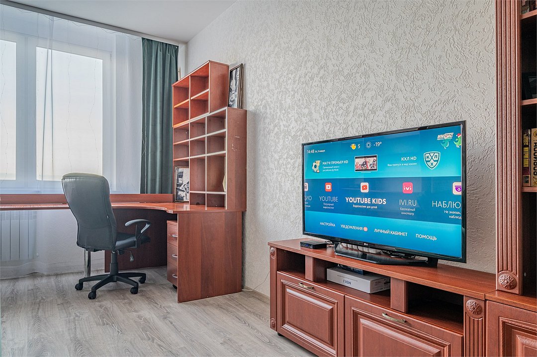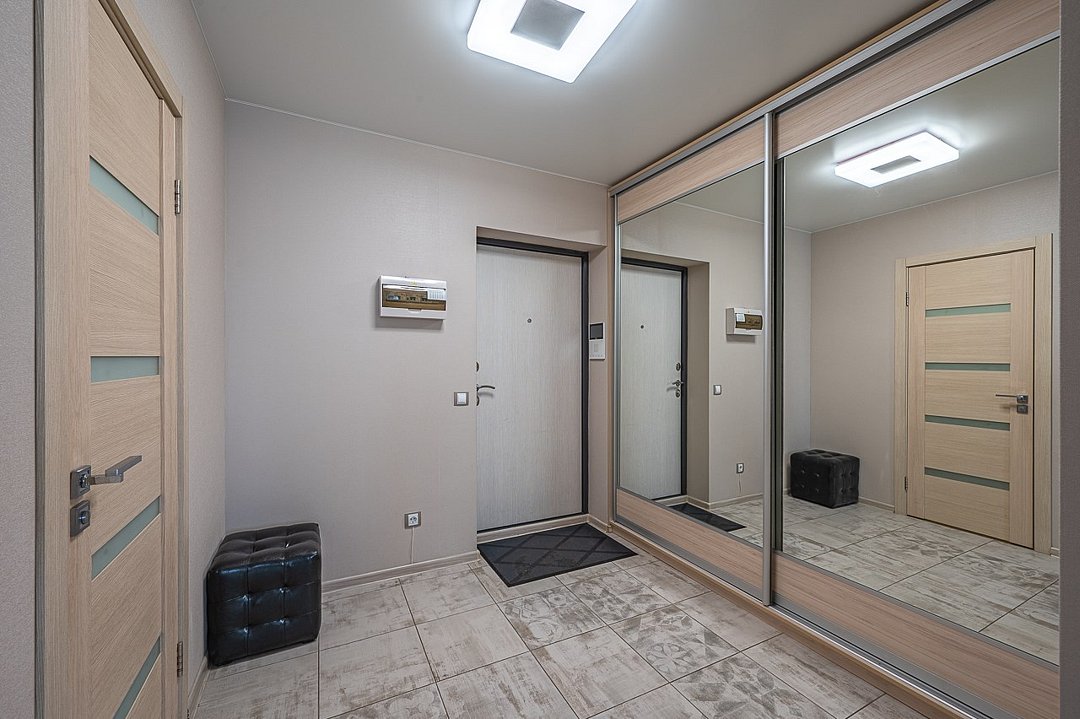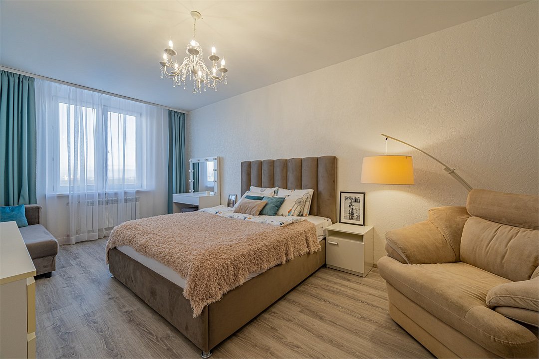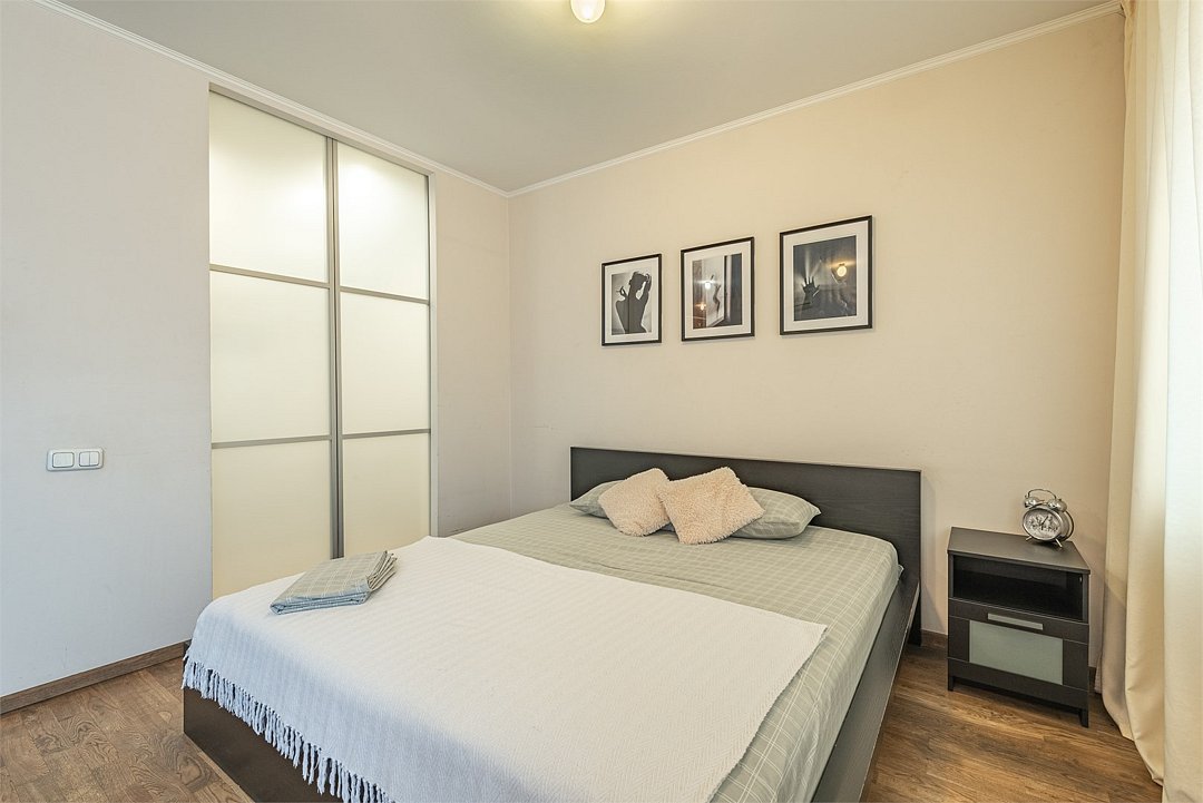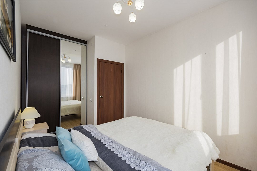 Апартаменты с двумя спальнями расположены на двадцатом этаже жилого комплекса "Стрелки" в Железнодорожном районе Екатеринбурга. Две изолированные спальни, просторная гостиная- кухня, балкон и ванная комната. В пешем доступе Ж/д вокзал, Северный автовокзал, УРГУПС, Управление Дороги и набережная реки Исеть. Детская и спортивные площадки во дворе, охраняемая парковка(в трехстах метрах от дома) и консьерж сделают Ваше пребывание у нас комфортным и безопасным. Современный ремонт с участием дизайнера - декоратора позволяет почувствовать домашний уют каждому гостю. В наличии вся необходимая мебель и техника: - двуспальные кровати с ортопедическим основанием и удобным матрасом ; - большой раскладной диван; - шкаф-купе для одежды. Полноценная кухня, оснащена техникой, утварью и посудой, а именно: - плита; - микроволновая печь; - холодильник; - электрочайник; - бокалы под шампанское; - набор кастрюль и сковородок. Ванная комната оборудована ванной, раковиной, унитазом, стиральной машиной. Также для вашего удобства: - фен; - утюг ; - гладильная доска; - сушилка; - полотенца и постельное белье высокого качества. Для Вашего комфорта и развлечений всегда можно воспользоваться бесплатным WIFI и интерактивным ТВ. Кроме того, в наших апартаментах реализовано самостоятельное заселение, поэтому заселиться можно в любое удобное Вам время.Услуги и удобства