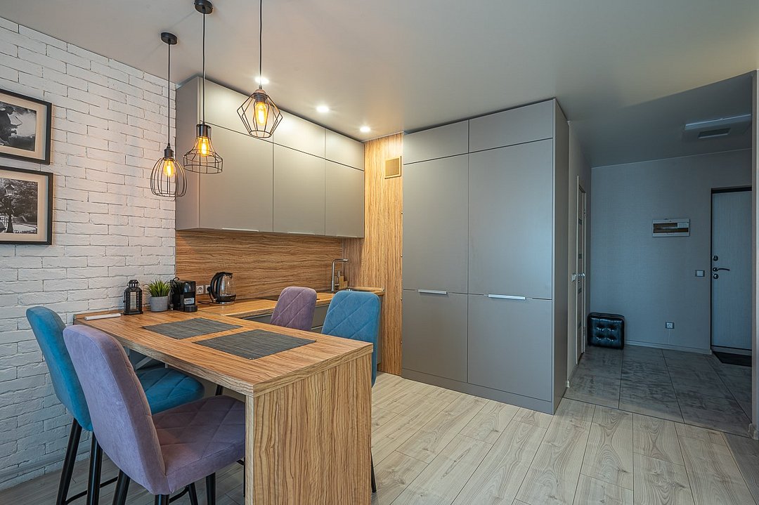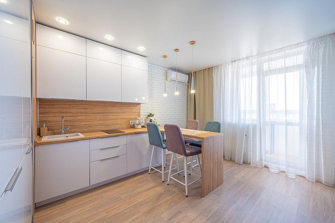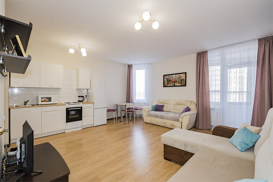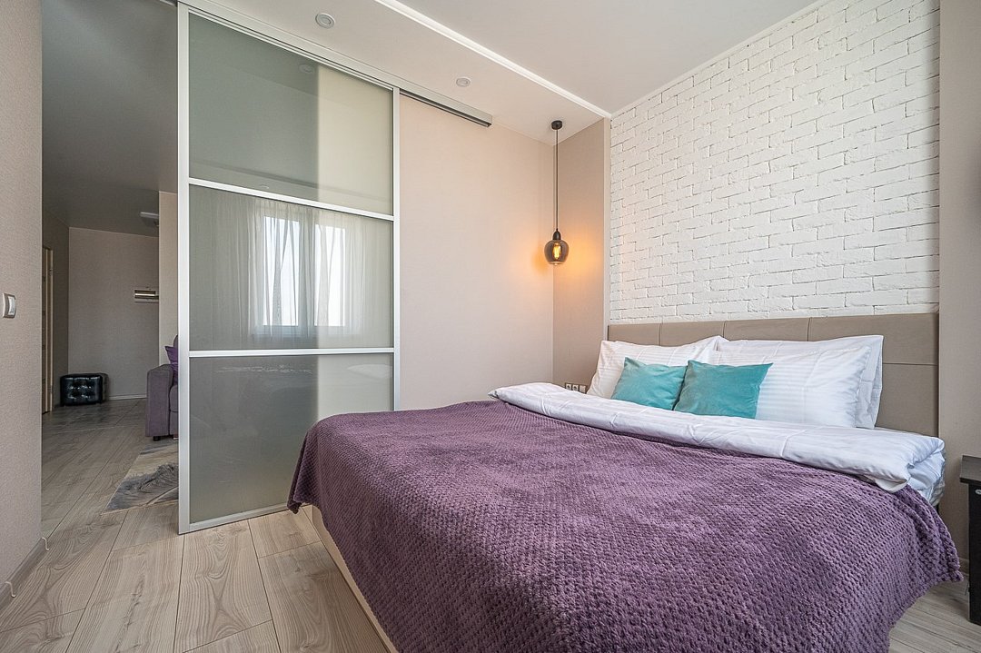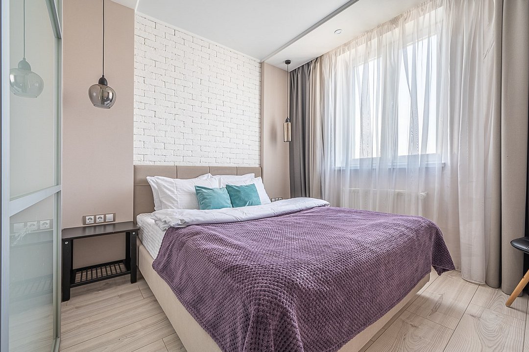 Апартаменты расположены на 11 этаже нового ЖК "Мельница" прямо напротив Ж/Д вокзала, в центральном квартале Екатеринбурга. В пешем доступе Ж/д вокзал, Северный автовокзал, станция метро Уральская. Территория комплекса закрыта, внутри расположены детская и спортивные площадки, охраняемая парковка(в шестистах метрах от дома). Современный ремонт с участием дизайнера - декоратора позволяет почувствовать домашний уют каждому гостю. В наличии вся необходимая мебель и техника: - двуспальные кровати с ортопедическим основанием и удобным матрасом ; - большой раскладной диван; - шкаф и комод для одежды. Полноценная кухня, оснащена техникой, утварью и посудой, а именно: - варочная поверхность; - микроволновая печь; - холодильник; - электрочайник; - бокалы под шампанское; - набор кастрюль и сковородок. Ванная комната оборудована ванной, раковиной, унитазом, стиральной машиной. Также для вашего удобства: - фен; - утюг ; - гладильная доска; - сушилка; - полотенца и постельное белье высокого качества. Для Вашего комфорта и развлечений всегда можно воспользоваться бесплатным WIFI и интерактивным ТВ. Кроме того, в наших апартаментах реализовано самостоятельное заселение, поэтому заселиться можно в любое удобное Вам время.Услуги и удобства