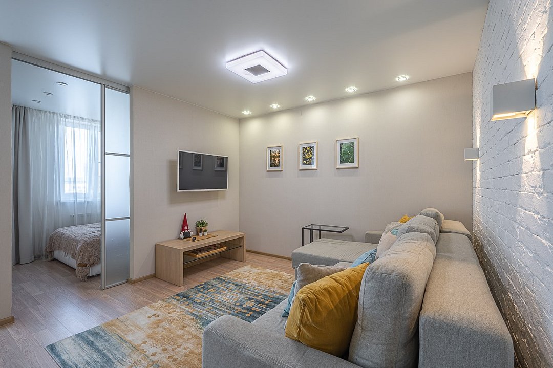 Комната-студия с персональной ванной комнатой на территории 4хкомнатной квартиры. Удобное расположение рядом с ТРЦ Алатырь, стадионом Екатеринбург Арена, центральными улицами Екатеринбурга - Ленина и Малышева, а также продовольственные магазины, множество кафе и ресторанов, отличная транспортная доступность. В наличии все для комфортного проживания: - двуспальная кровать с удобным матрасом; - функциональный диван (удобен для сна, при размещении двух гостей на раздельных спальных местах) - собственная ванная комната с душем; - мини - холодильник; - телевизор (32 дюйма); - электрочайник ; - СВЧ-печь; - набор посуды и приборы ; Для Вашего комфорта и развлечений всегда можно воспользоваться бесплатным WIFI и интерактивным ТВ. Кроме того, в наших апартаментах реализовано самостоятельное заселение, поэтому заселиться можно в любое удобное Вам время. До заселения нужно зарегистрироваться: заполнив анкету с паспортными данными и предъявить фото/сканы документа ( без регистрации и предоставления паспорта заселение не возможно). Шумное поведение, курение в апартаменте, пребывание дополнительных гостей (сверх того количества, что указано в бронировании), проведение мероприятий (посиделки/дни рождения/застолья и т.п.) не допускаются.Услуги и удобства