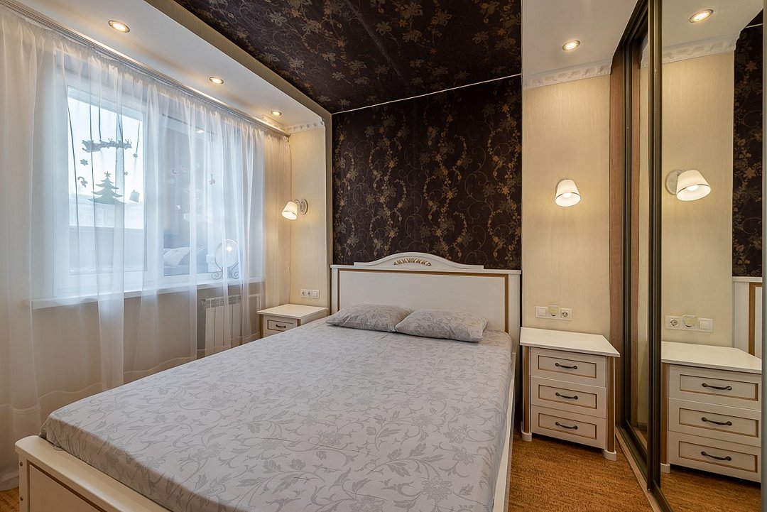 Апартаменты с двумя спальнями расположены на четвертом этаже жилого дома в Чкаловском районе Екатеринбурга. Две спальни, кухня , прихожая, балкон и два санузла. В пешем доступе институт станция метро "Ботаническая", ТГ "Дирижабль", аквапарк "Лимпопо", ледовая арена "Айс", Океанариум. Современный ремонт с применением качественных отделочных материалов позволяет уютно чувствовать себя каждому гостю. В наличии вся необходимая мебель и техника: - две двуспальные кровать размера "Queen Size" с удобным матрасом ; - два раскладных дивана; - шкафы для одежды; - комод. Полноценная кухня, оснащена техникой, утварью и посудой, а именно: - плита; - микроволновая печь; - холодильник; - электрочайник; - бокалы под шампанское; - набор кастрюль и сковородок. Ванная комната оборудована ванной, раковиной, унитазом, стиральной машиной. Также для вашего удобства: - фен; - утюг ; - гладильная доска; - сушилка; - полотенца и постельное белье высокого качества. Для Вашего комфорта и развлечений всегда можно воспользоваться бесплатным WIFI и интерактивным ТВ. Кроме того, в наших апартаментах реализовано самостоятельное заселение, поэтому заселиться можно в любое удобное Вам время.Услуги и удобства