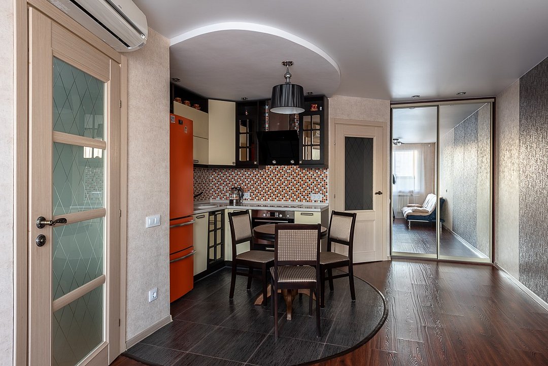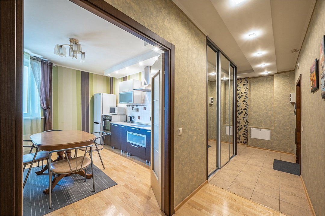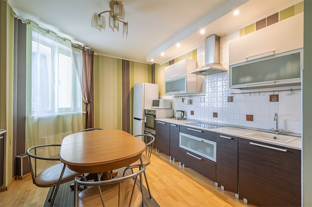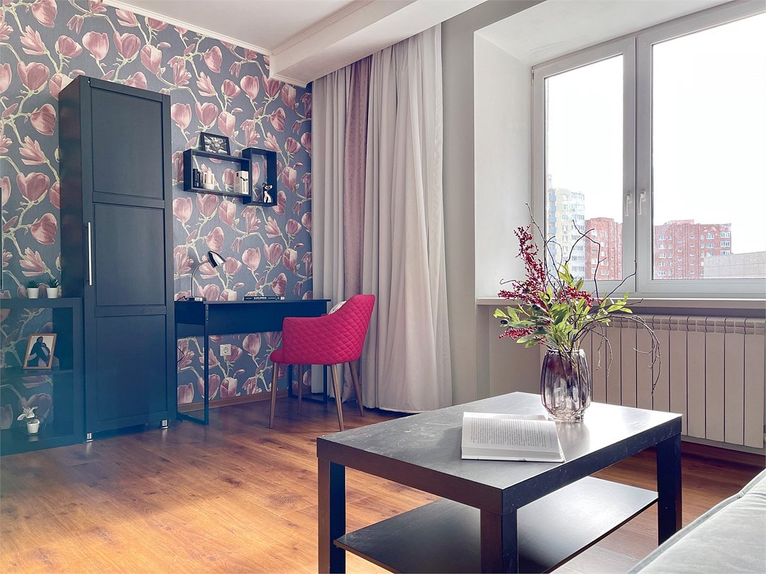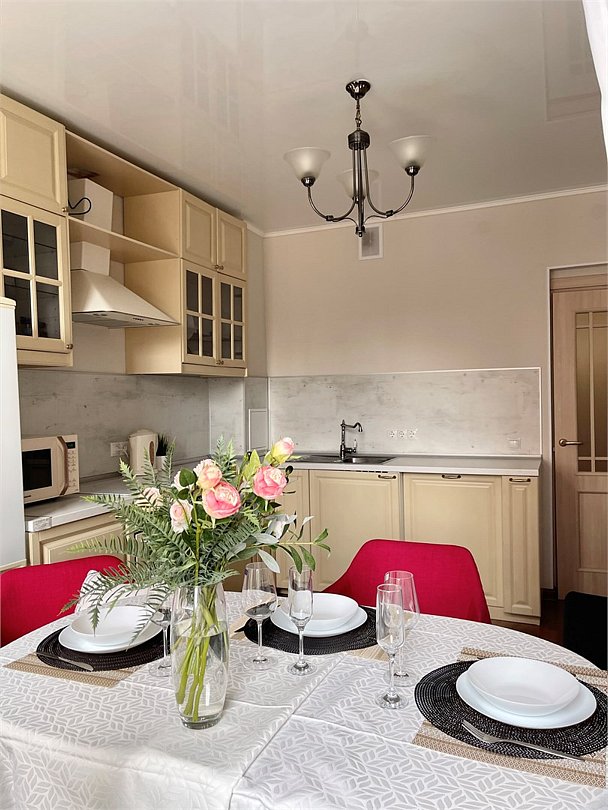 Квартира расположена на шестом этаже современного жилого комплекса с закрытой территорией и развитой инфраструктурой вокруг . В 500 метрах от дома расположены станция метро "Чкаловская", автовокзал Южный и торгово-развлекательный центр "Мегаполис". На закрытой территории двора есть детская и спортивная площадки, парковка о дворе возможна только для загрузки и выгрузки. На первых этажах близлежащих домов расположены продуктовые и бытовые магазины, пекарня и кафе. Для автомобилистов есть возможность запарковаться на платной охраняемой стоянке, прямо напротив дома (вдоль улицы Щорса). Современный ремонт с участием дизайнера - декоратора позволяет почувствовать домашний уют каждому гостю. В наличии вся необходимая мебель и техника: - двуспальная кровать с ортопедическим основанием и комфортным матрасом ; - большой раскладной диван; - шкаф-купе для одежды. Полноценная кухня, оснащена техникой, утварью и посудой, а именно: - варочная поверхность; - микроволновая печь; - холодильник; - электрочайник; - наборы посуды и кухонной утвари. Ванная комната оборудована ванной, раковиной, унитазом, стиральной машиной. Также для вашего удобства: - фен; - утюг ; - гладильная доска; - сушилка; - полотенца и постельное белье высокого качества. Для Вашего комфорта и развлечений всегда можно воспользоваться бесплатным WIFI и интерактивным ТВ. Кроме того, в наших апартаментах реализовано самостоятельное заселение, поэтому заселиться можно в любое удобное Вам время.Услуги и удобства
