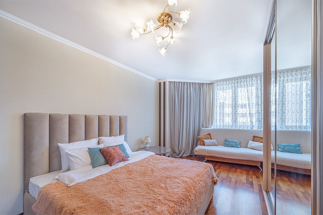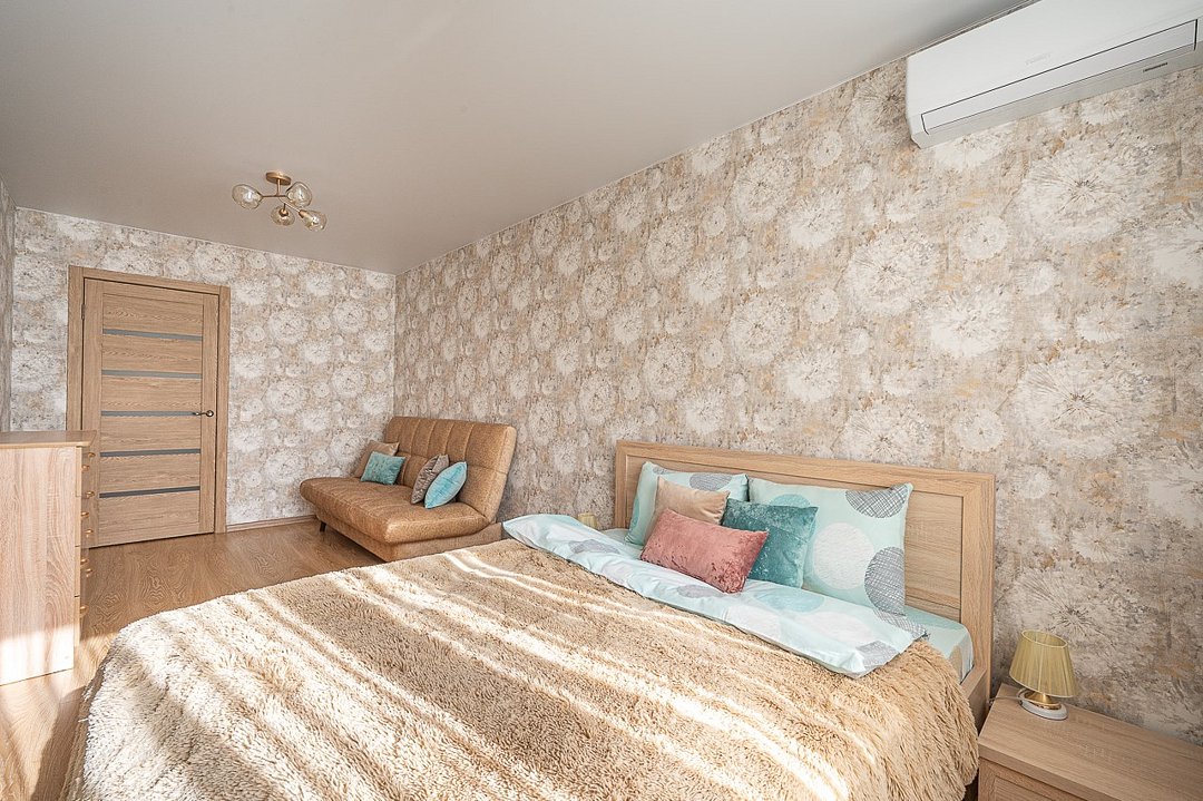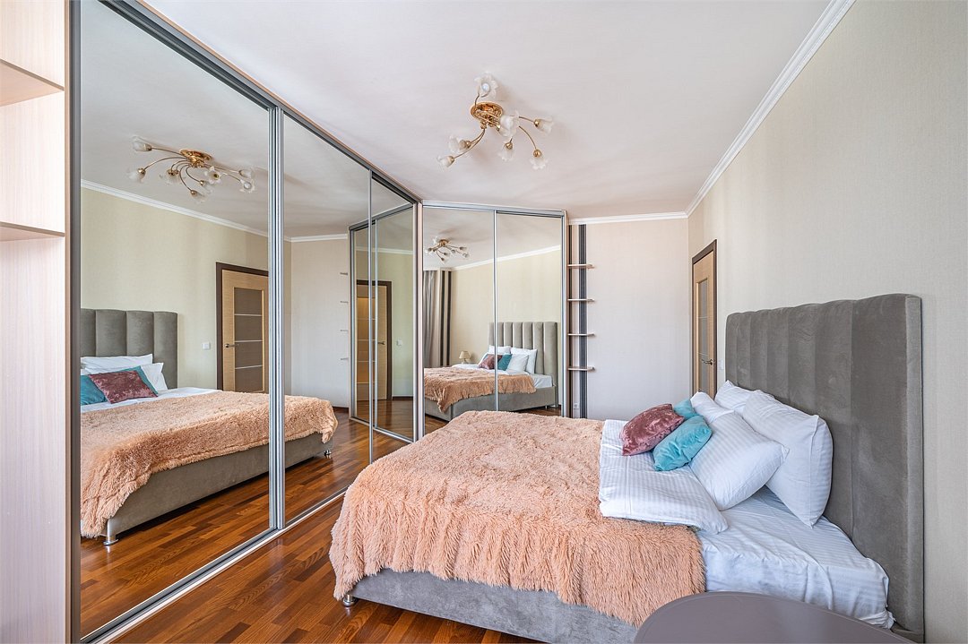 Апартаменты с двумя спальнями расположены на девятом этаже закрытого жилого комплекса в Ленинском районе Екатеринбурга. Две спальни, кухня , прихожая, балкон и раздельный санузел. В пешем доступе станции метро "Чкаловская", ТРЦ Мегаполис, парк Маяковского. Детская площадка во дворе, видеонаблюдение в лифтах, круглосуточная охрана сделают Ваше пребывание у нас комфортным и безопасным. Современный ремонт с применением качественных отделочных материалов позволяет уютно чувствовать себя каждому гостю. В наличии вся необходимая мебель и техника: - две двуспальные кровати размера "Queen Size" с ортопедическими основаниями и удобными матрасами ; - два раскладных дивана; - шкафы-купе для одежды; Полноценная кухня, оснащена техникой, утварью и посудой, а именно: - варочная поверхность; - духовой шкаф; - микроволновая печь; - холодильник; - электрочайник; - набор кастрюль и сковородок. Ванная комната оборудована ванной, раковиной, унитазом, стиральной машиной. Также для вашего удобства: - фен; - утюг ; - гладильная доска; - сушилка; - полотенца и постельное белье высокого качества. Для Вашего комфорта и развлечений всегда можно воспользоваться бесплатным WIFI и интерактивным ТВ.Услуги и удобства