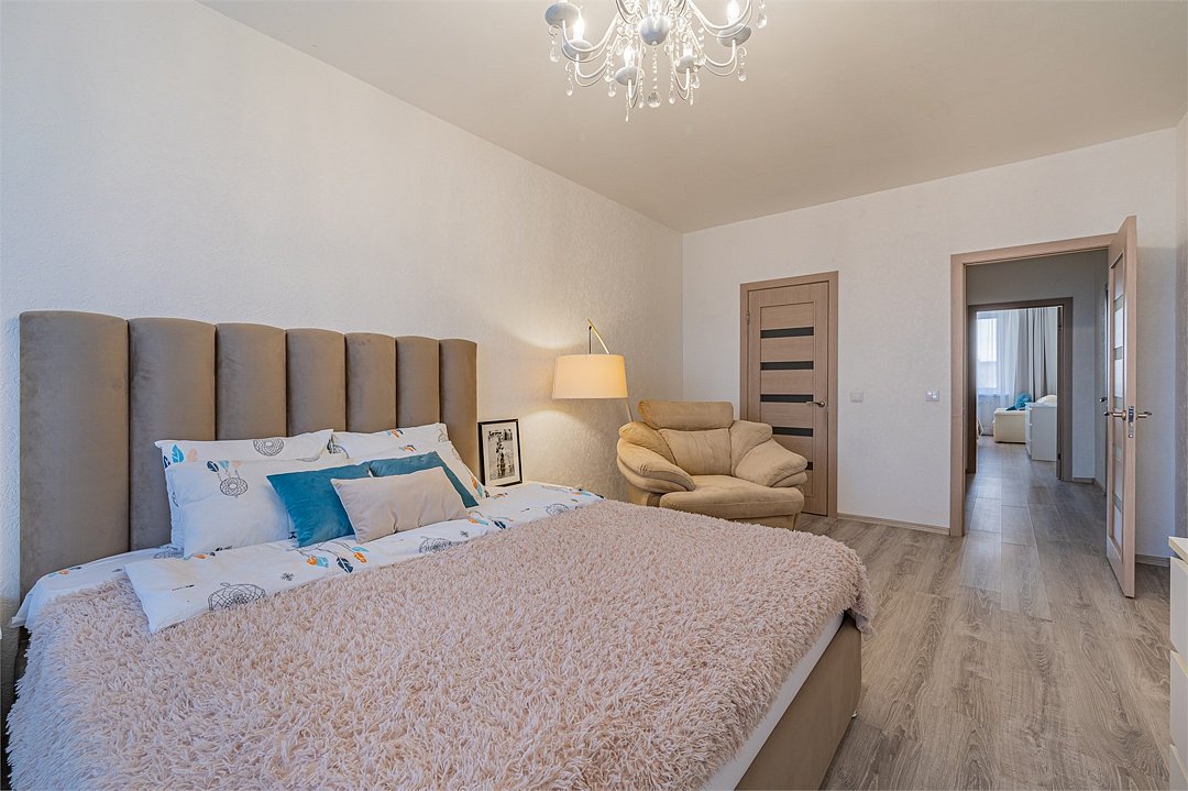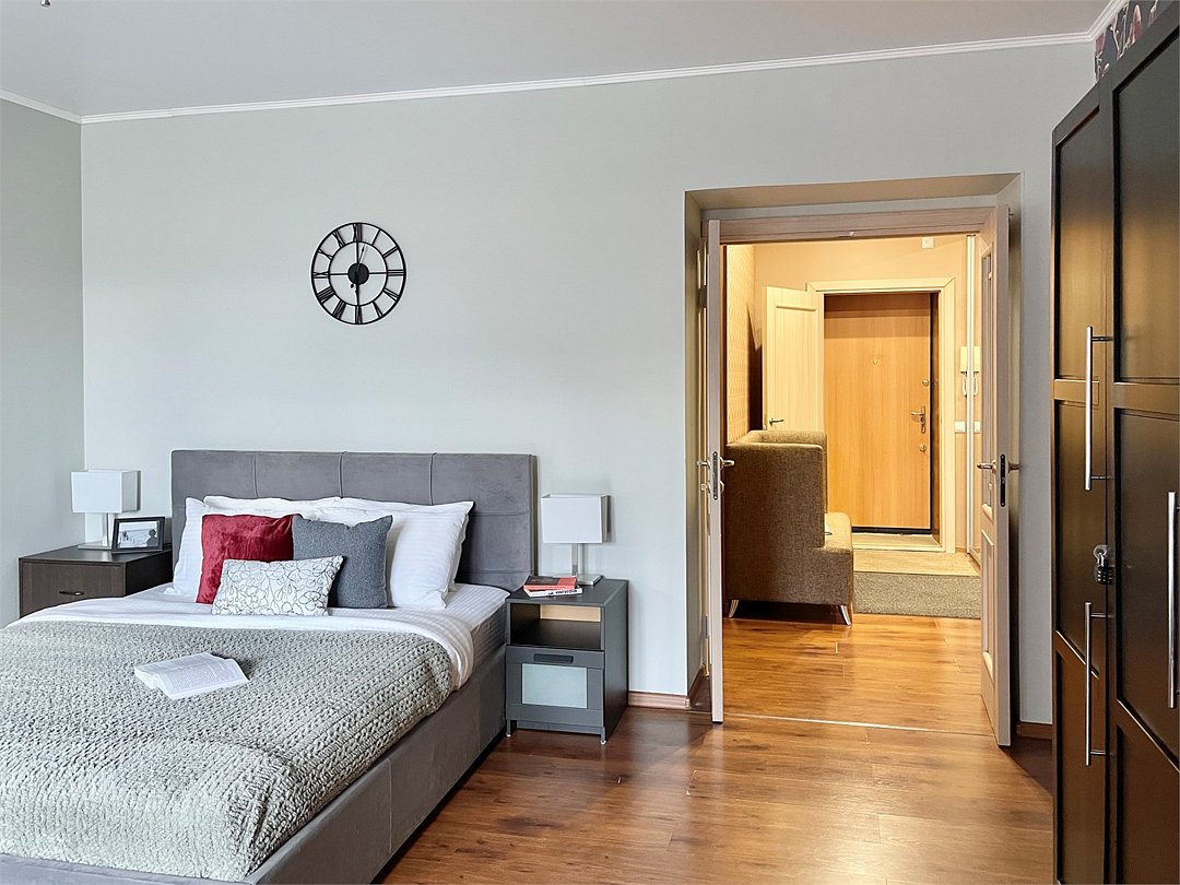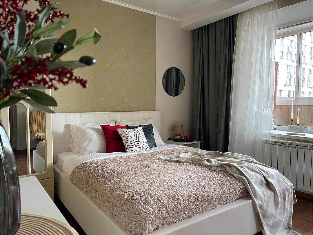 Трехкомнатная квартира расположена на 21 этаже жилого комплекса в Академическом районе Екатеринбурга. Современная планировка включает в себя - две изолированные спальни с гардеробными комнатами, гостиную, кухню , прихожую, балкон и два санузла. Из квартиры открывается великолепный вид на березовую рощу и Юго-западный лесопарк, окна одно спальни выходят во двор. В пешем доступе остановки общественного транспорта, ТЦ Краснолесье, прогулочные бульвары, велосипедные дорожки и тропа здоровья по лесопарку.. Детская площадка во дворе, видеонаблюдение в лифтах, круглосуточная охрана сделают Ваше пребывание у нас комфортным и безопасным. Современный ремонт с применением качественных отделочных материалов позволяет уютно чувствовать себя каждому гостю. В наличии вся необходимая мебель и техника: - двуспальные кровати размеров "King Size" и "Queen Size" с ортопедическими основаниями и удобными матрасами ; - каждая спальня оборудована собственной гардеробной; - угловой диван в гостиной (также разбирается в комфортное спальное место); - шкаф-купе для одежды; - комод. Полноценная кухня, оснащена техникой, утварью и посудой, а именно: - духовой шкаф; - варочная поверхность; - микроволновая печь; - холодильник; - посудомоечная машина; - электрочайник; - бокалы под шампанское; - набор кастрюль и сковородок. Ванная комната и отдельный санузел оборудованы ванной, раковиной, унитазами, стиральной машиной. Также для вашего удобства: - фен; - утюг ; - гладильная доска; - сушилка; - полотенца и постельное белье высокого качества. Для Вашего комфорта и развлечений всегда можно воспользоваться бесплатным WIFI и интерактивным ТВ. Кроме того, в наших апартаментах реализовано самостоятельное заселение, поэтому заселиться можно в любое удобное Вам время.Услуги и удобства