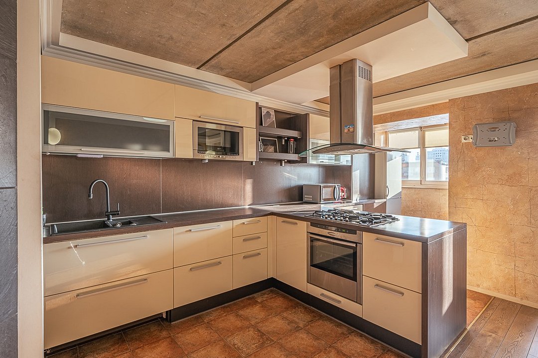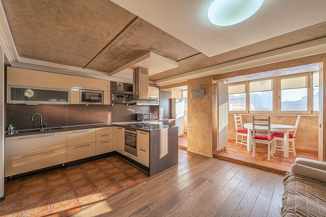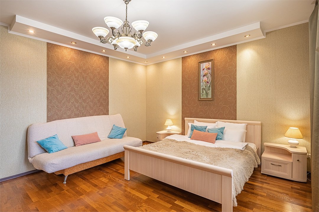 Апартаменты расположены на 5м этаже дома на перекрестке центральных улиц города (проспекта Ленина и улицы Карла Либкнехта). В трех минутах ходьбы от БЦ "Высоцкий" и в пяти - от Плотинки. Советское прошлое дома связано с партийной элитой, поэтому в подъезде чистота, горшки с цветами и есть лифт, а во дворе подземный паркинг. В апартаментах сделана перепланировка и дизайнерский ремонт с применением качественных отделочных материалов. В наличии вся необходимая мебель и техника: - двуспальная кровать размера "King Size" с ортопедическим основанием и удобным матрасом ; - раскладной диван; - обеденный стол и стулья из массива; - просторная гардеробная. Полноценная кухня, оснащена техникой, утварью и посудой, а именно: -варочная поверхность и духовой шкаф; - микроволновая печь; - холодильник; - электрочайник; - бокалы под шампанское; - набор кастрюль и сковородок. Ванная комната оборудована огромным зеркалом, душевой кабиной, раковиной, унитазом и стиральной машиной. Также для вашего удобства: - фен; - утюг ; - гладильная доска; - сушилка; - полотенца и постельное белье высокого качества. Для Вашего комфорта и развлечений всегда можно воспользоваться бесплатным WIFI и интерактивным ТВ. Кроме того, в наших апартаментах реализовано самостоятельное заселение, поэтому заселиться можно в любое удобное Вам время.Услуги и удобства