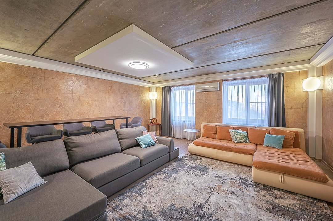 Уникальные апартаменты расположены на четвертом этаже жилого дома в Юго-западном микрорайоне Екатеринбурга. Две большие спальни (одна мастер-спальня), просторная гостиная с телевизором с диагональю 60 дюймов, просторная кухня с обеденной зоной, две туалетные комнаты, одна с джакузи, другая с душевой кабиной. В пешем доступе ТРЦ Фан Фан, Управление ГИБДД, КРК Уралец, Академия единоборств РМК и клиника УГМК. Детская и спортивные площадки во дворе, охраняемая парковка(в трехстах метрах от дома) сделают Ваше пребывание у нас комфортным и безопасным. Дизайнерский ремонт позволяет почувствовать домашний уют каждому гостю. В наличии вся необходимая мебель и техника: - двуспальные кровати с ортопедическим основанием и удобным матрасом ; - большие раскладные диваны; - гардеробная комната и несколько комодов . Полноценная кухня, оснащена техникой, утварью и посудой, а именно: - варочная поверхность; - духовой шкаф; - микроволновая печь; - холодильник; - электрочайник; - набор посуды и утвари. Ванная комната в мастер-спальне оборудована джакузи, раковиной, унитазом. Во второй ванной комнате душевая кабина. Стиральная машина расположена в гардеробной. Также для вашего удобства: - фен; - утюг ; - гладильная доска; - сушилка; - полотенца и постельное белье высокого качества. Для Вашего комфорта и развлечений всегда можно воспользоваться бесплатным WIFI и интерактивным ТВ. Подключена подписка онлайн-кинотеатра Ivi. Кроме того, в наших апартаментах реализовано самостоятельное заселение, поэтому заселиться можно в любое удобное Вам время.Услуги и удобства