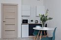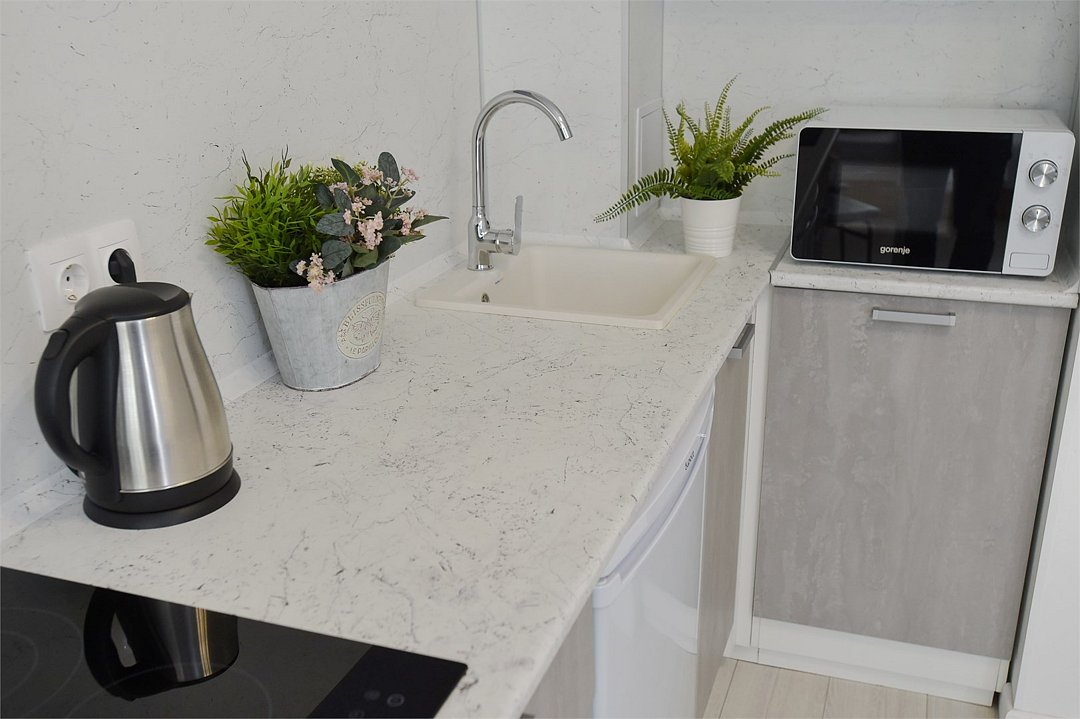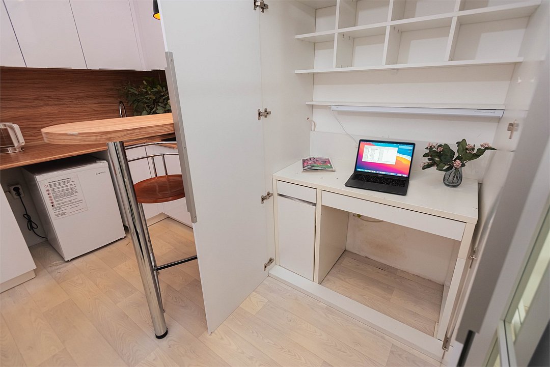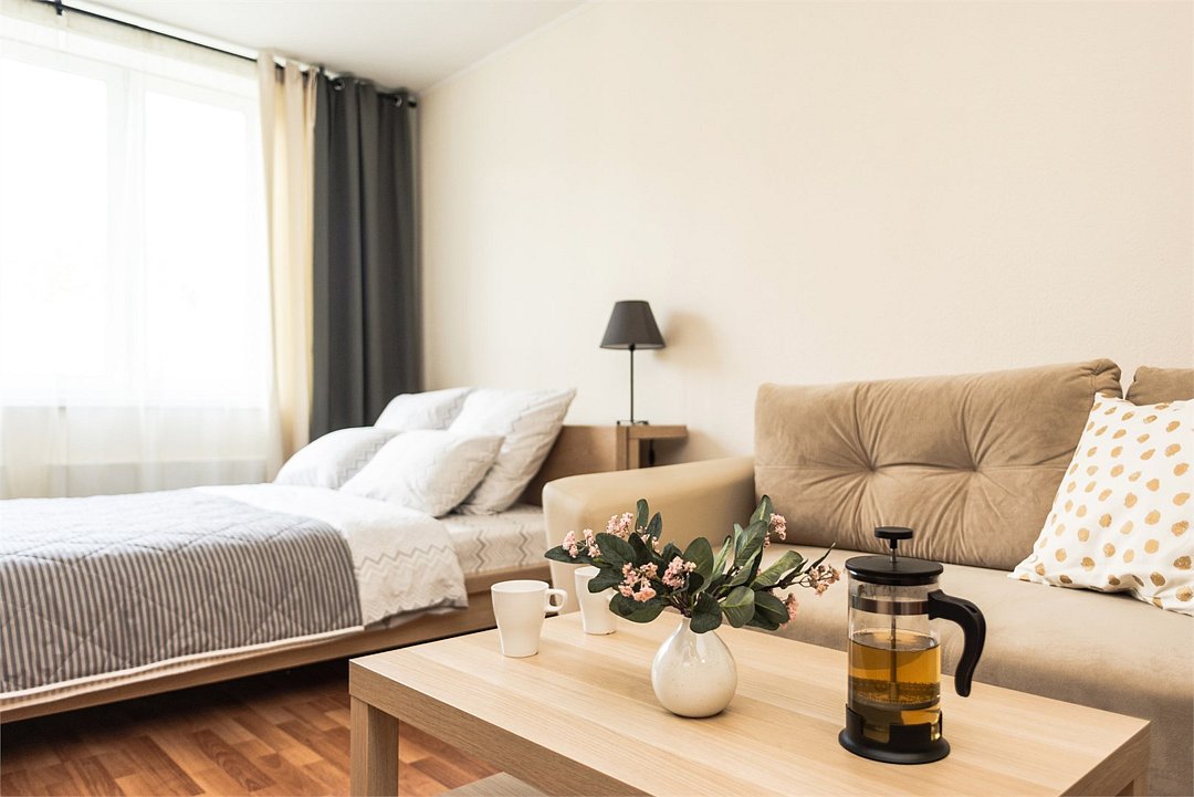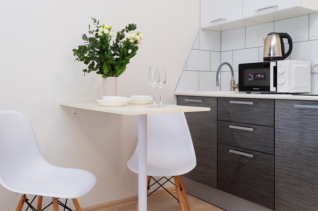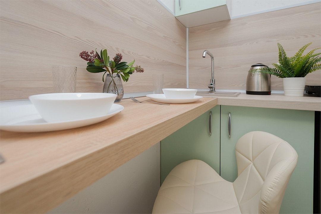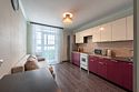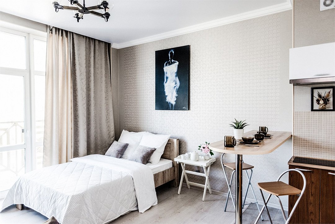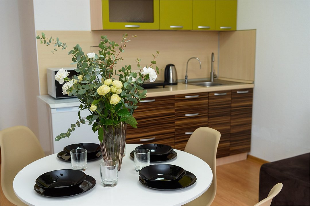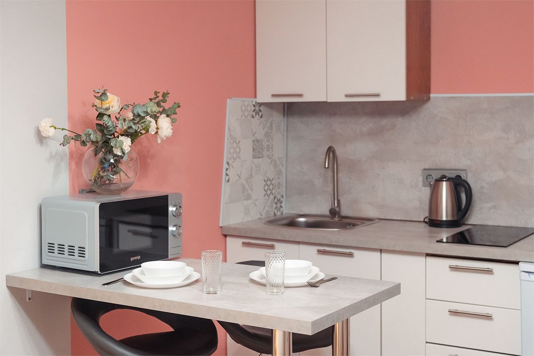 телевизор, кабельное телевидение, Wi-Fi, светильник, фен, плита для приготовления пищи, микроволновая печь, утюг, санузел, банные полотенца, гигиенические средства, балкон, двуспальная кровать, гладильная доска, стулья, вешалки, зеркало, набор посуды, стиральная машина, чайник, раковина, отопление, душ, вид во двор, кухонная посуда, столовые приборы, тумба, туалетные средства, туалет, сушилка для белья, мини-холодильник, кухонный уголок, номер для некурящих, набор для приготовления чая и кофе, без питомцевВ студии