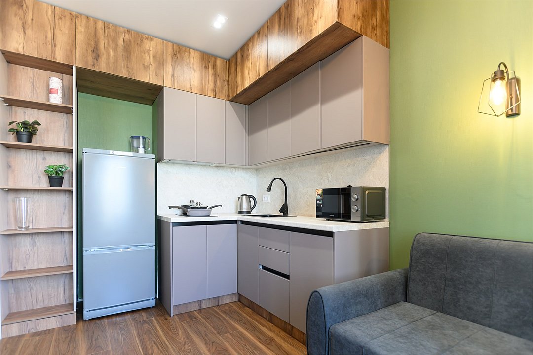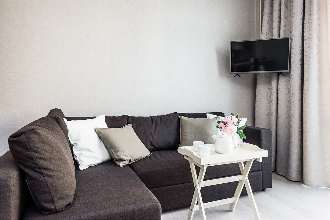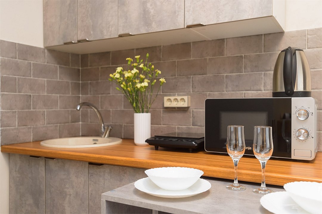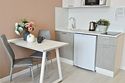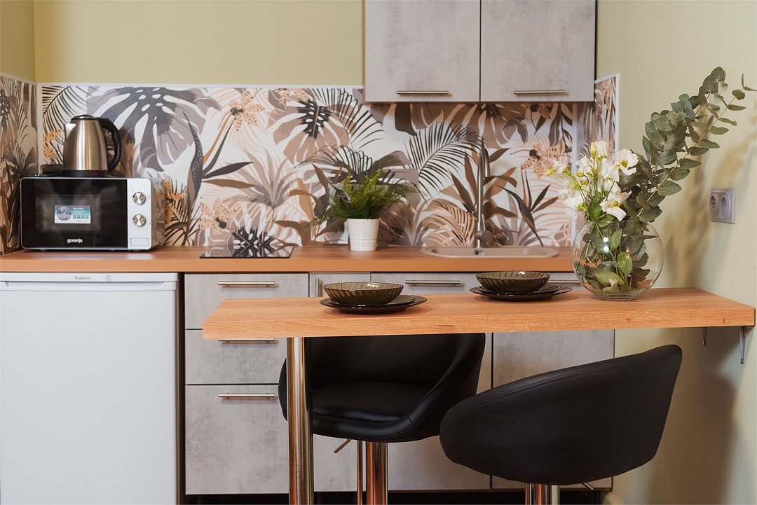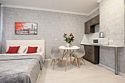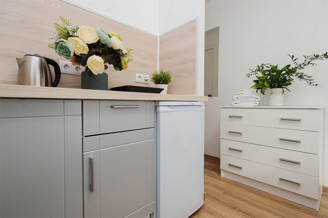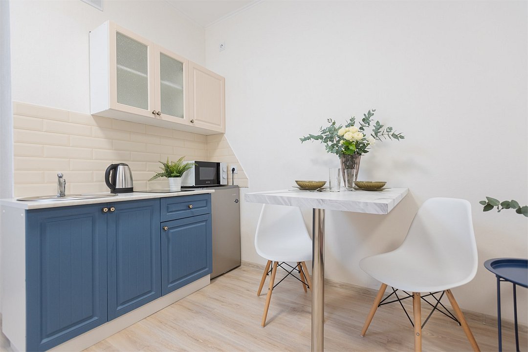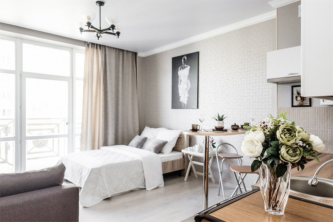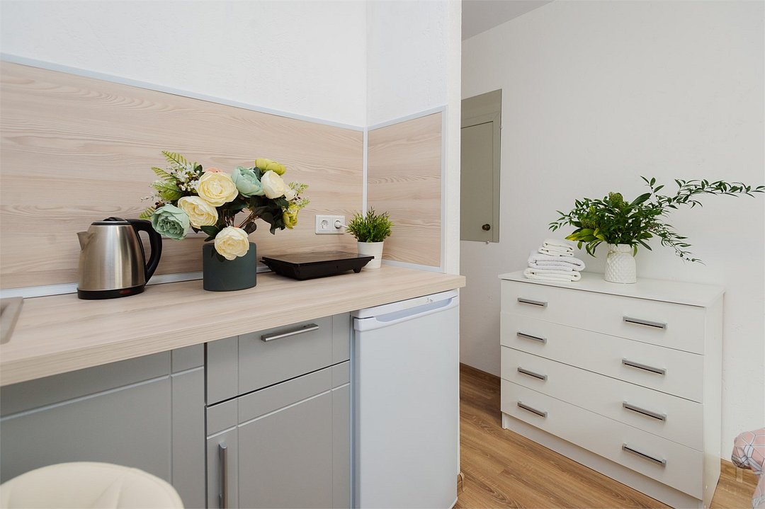 телевизор, кабельное телевидение, Wi-Fi, светильник, фен, плита для приготовления пищи, микроволновая печь, утюг, санузел, банные полотенца, гигиенические средства, балкон, двуспальная кровать, гладильная доска, стулья, вешалки, зеркало, набор посуды, стиральная машина, чайник, раковина, отопление, душ, вид во двор, кухонная посуда, столовые приборы, тумба, туалетные средства, туалет, сушилка для белья, мини-холодильник, кухонный уголок, номер для некурящих, набор для приготовления чая и кофе, без питомцевВ студии