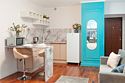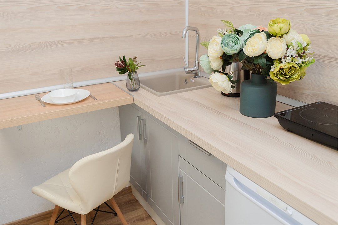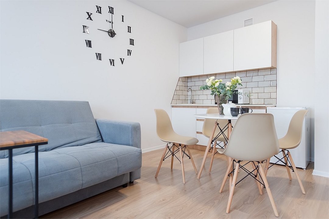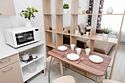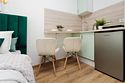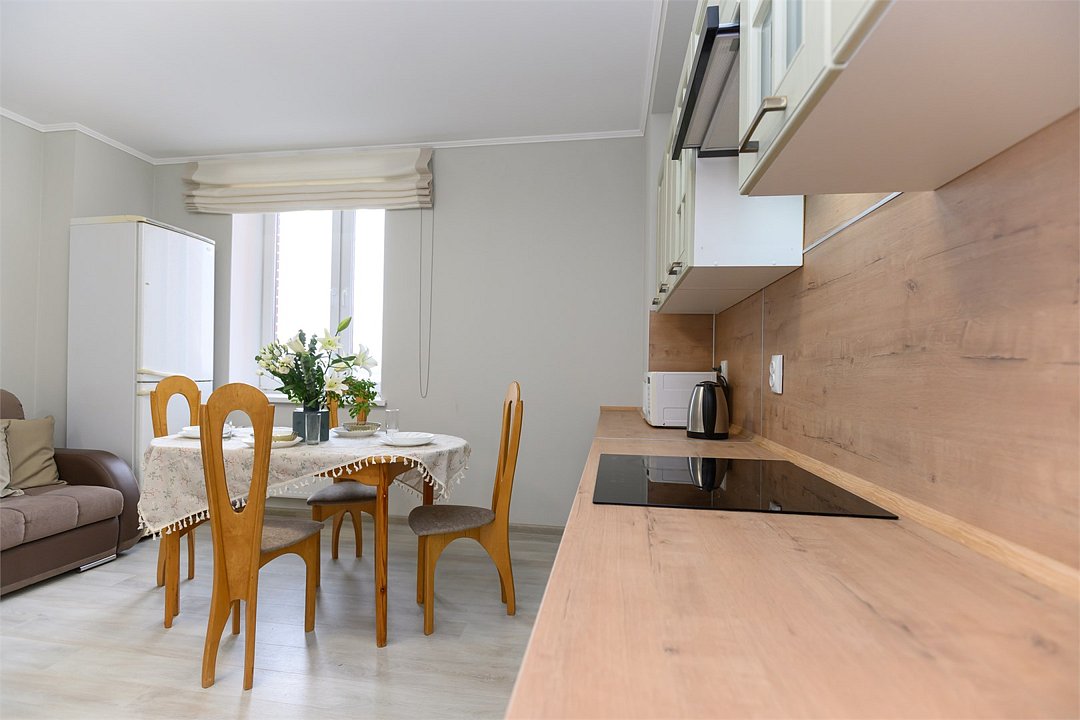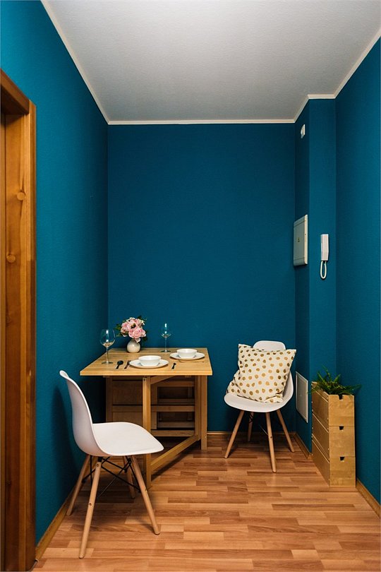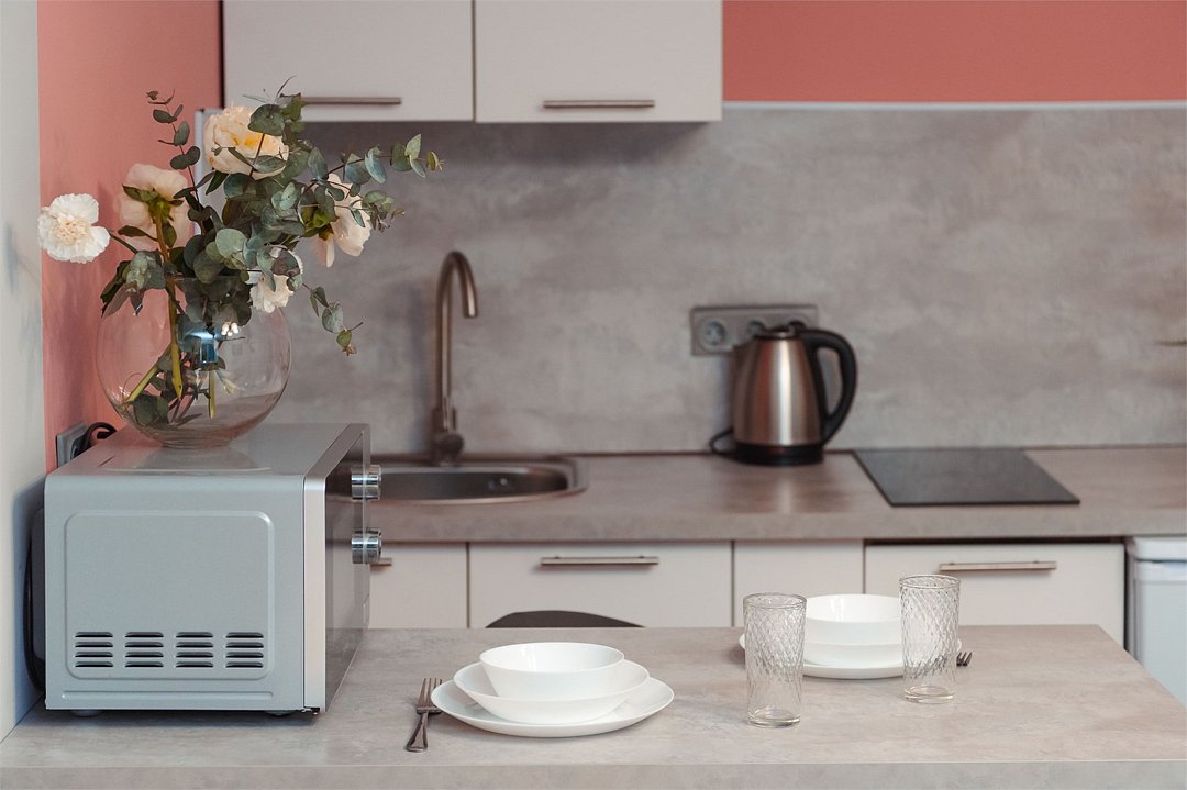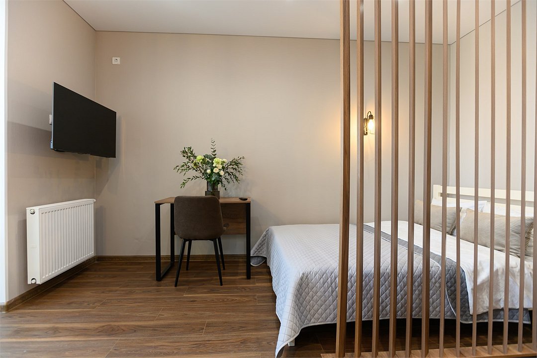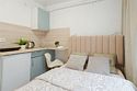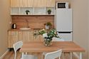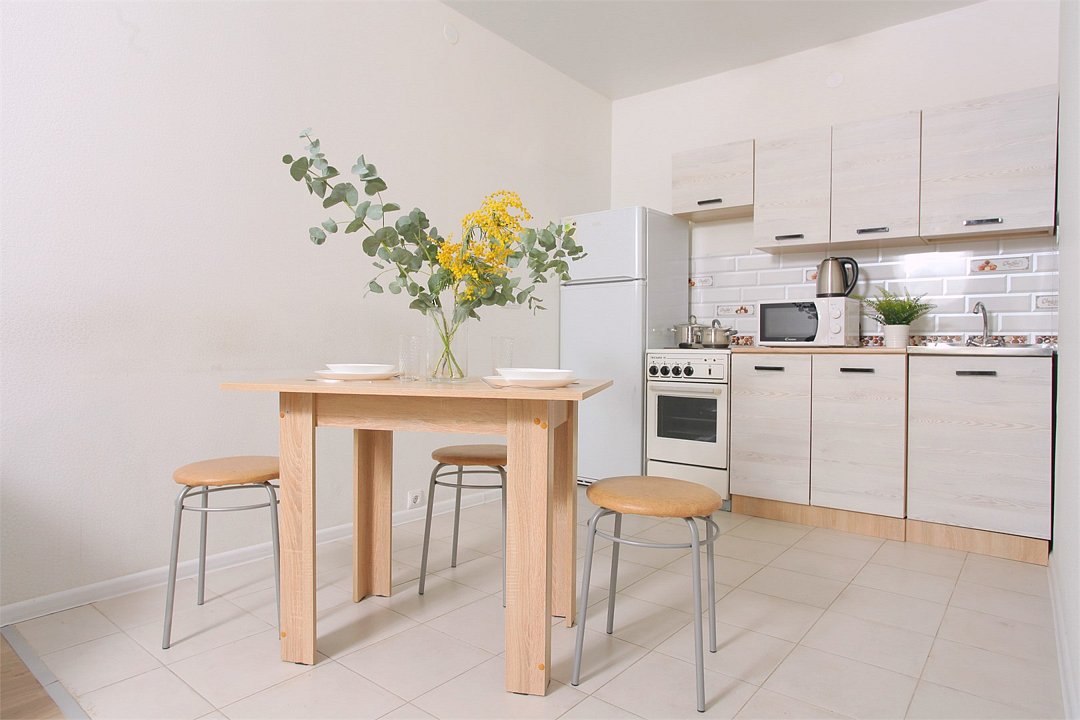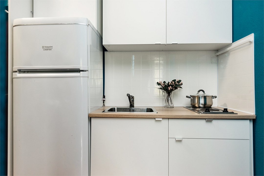 телевизор, кабельное телевидение, Wi-Fi, светильник, фен, плита для приготовления пищи, микроволновая печь, утюг, санузел, банные полотенца, гигиенические средства, балкон, двуспальная кровать, гладильная доска, стулья, вешалки, зеркало, набор посуды, стиральная машина, чайник, раковина, отопление, душ, вид во двор, кухонная посуда, столовые приборы, тумба, туалетные средства, туалет, сушилка для белья, мини-холодильник, кухонный уголок, номер для некурящих, набор для приготовления чая и кофе, без питомцевВ студии