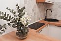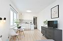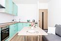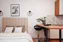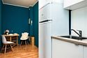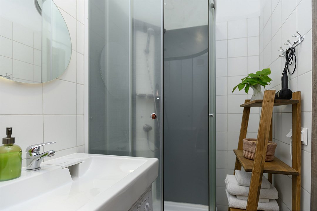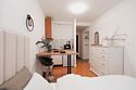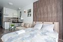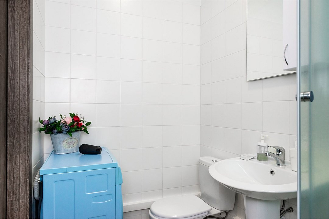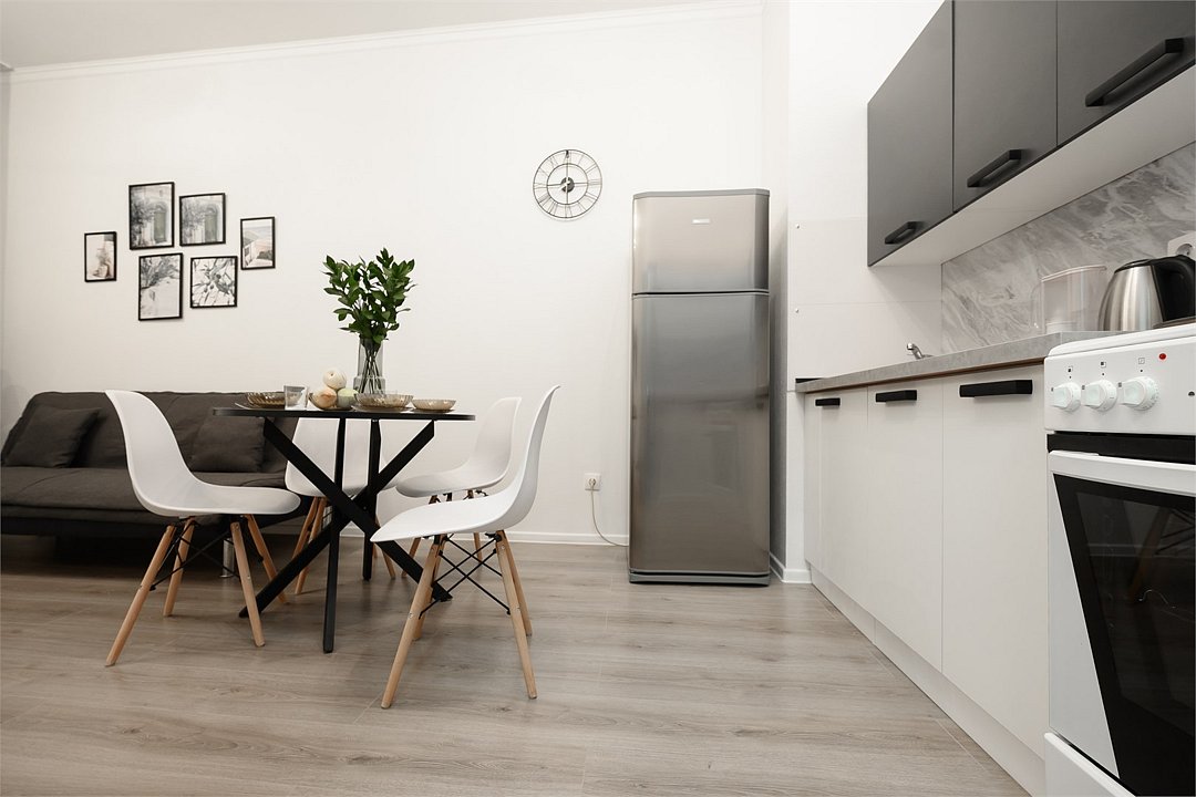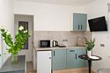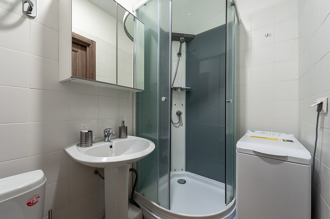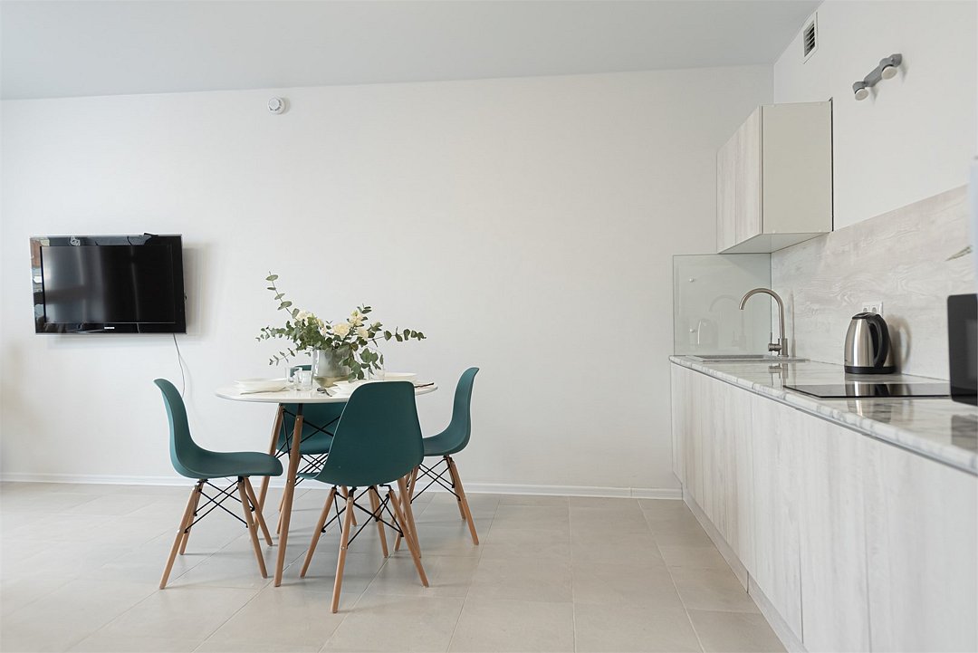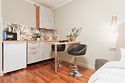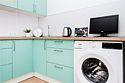 телевизор, кабельное телевидение, Wi-Fi, холодильник, светильник, фен, плита для приготовления пищи, микроволновая печь, утюг, ванна или душевая кабина, банные полотенца, двуспальная кровать, гладильная доска, стулья, шкаф для одежды, вешалки, стиральная машина, чайник, раковина, отопление, кухонная утварь, стол, туалетные средства, туалет, сушилка для белья, кухонный уголок, набор для приготовления чая и кофе, без питомцевВ студии