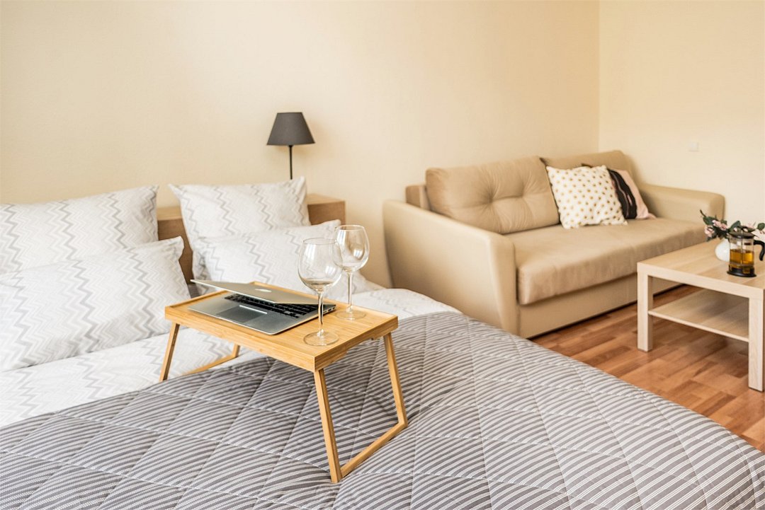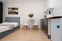 кабельное телевидение, Wi-Fi, фен, плита для приготовления пищи, микроволновая печь, утюг, ванна, санузел, банные полотенца, гигиенические средства, двуспальная кровать, гладильная доска, стулья, вешалки, барная стойка, зеркало, комод, мини-бар, стиральная машина, чайник, раковина, отопление, вид во двор, кухонная посуда, столовые приборы, туалетные средства, сушилка для белья, телевизор с плоским экраном, мини-холодильник, мини-кухня, набор для приготовления чая и кофе, без питомцевВ студии