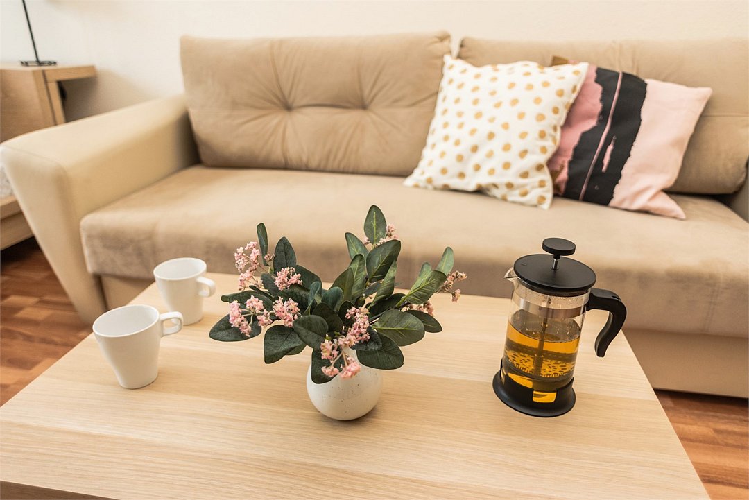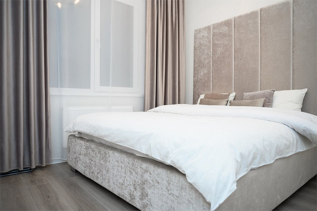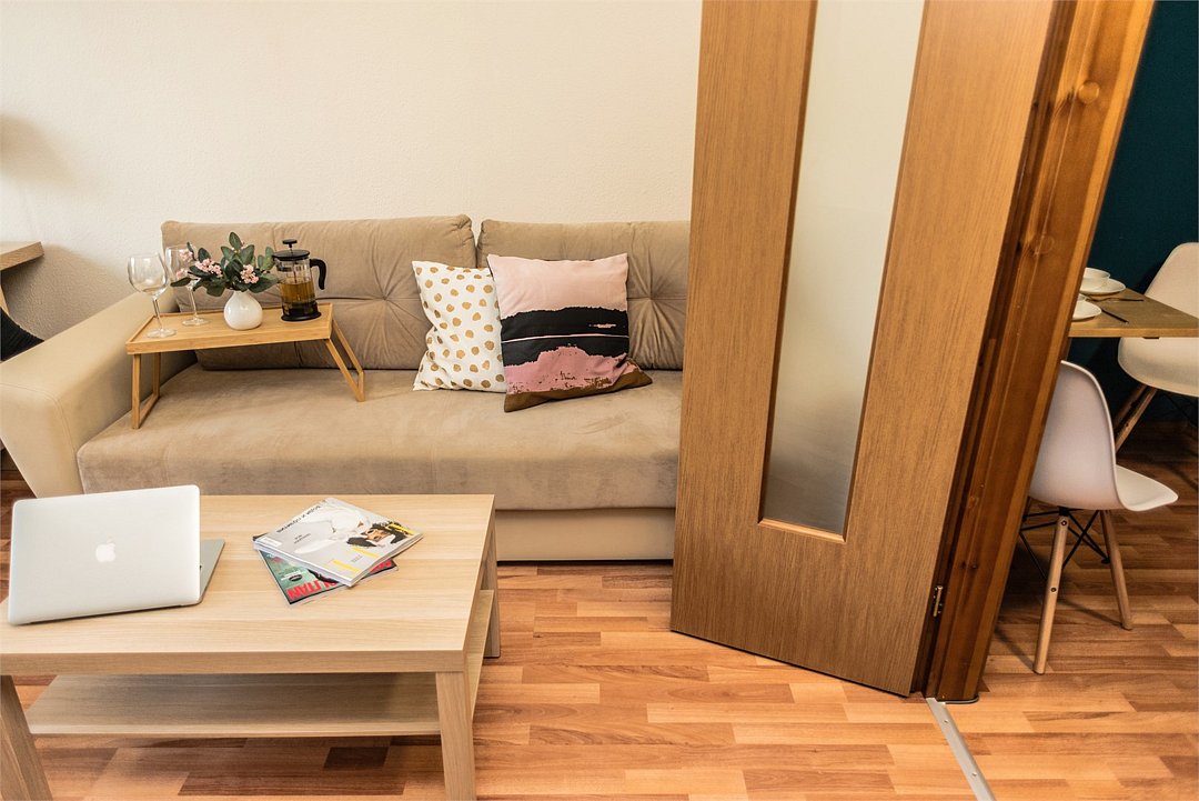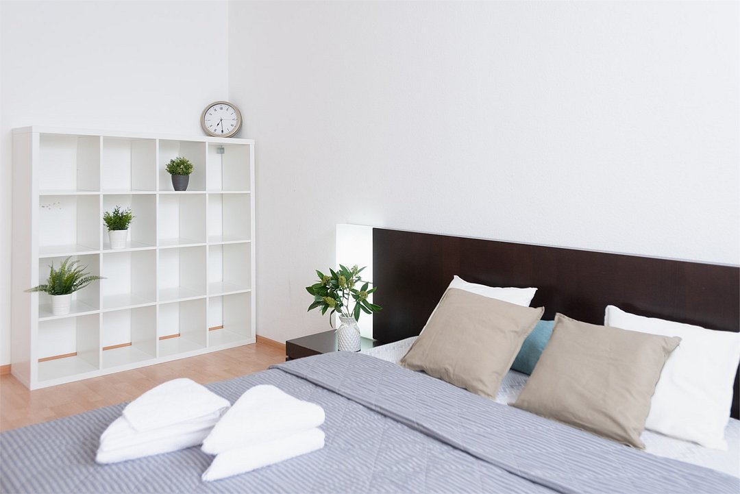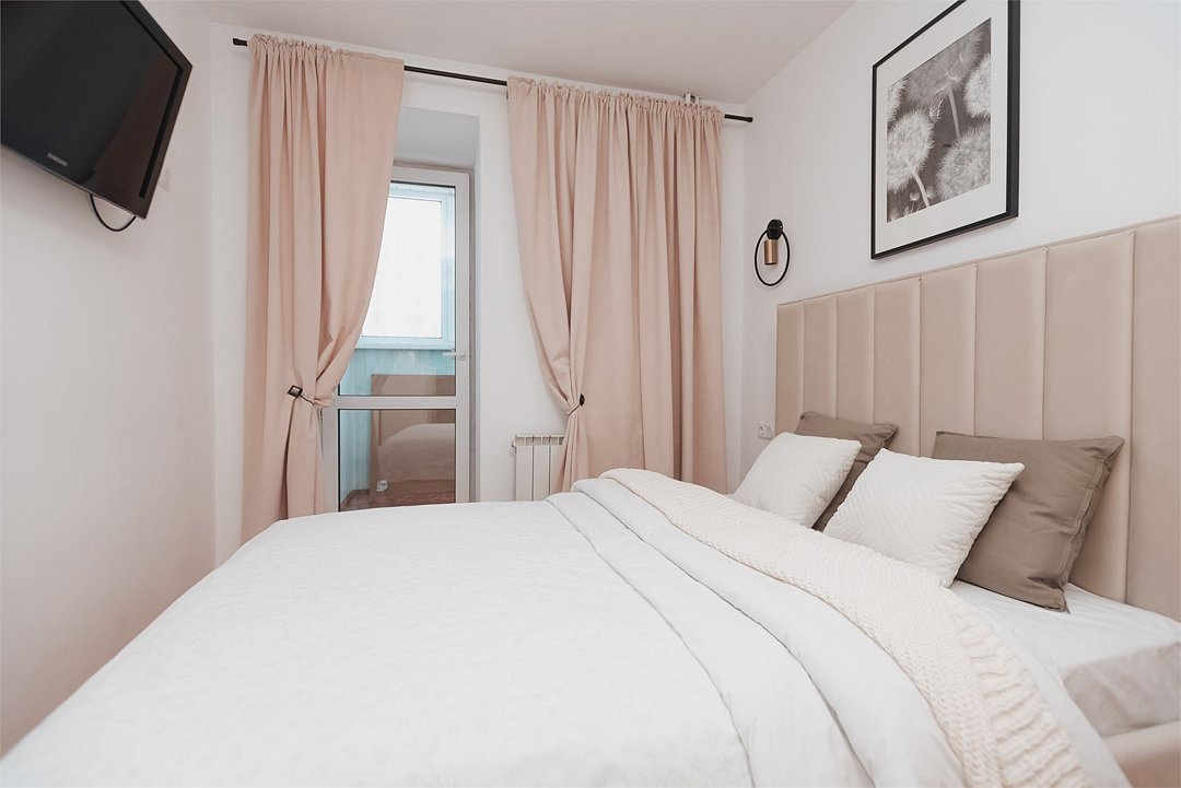 телевизор, кабельное телевидение, Wi-Fi, холодильник, фен, микроволновая печь, утюг, ванная комната, ванна, банные полотенца, балкон, две двуспальные кровати, гладильная доска, стулья, шкаф для одежды, вешалки, зеркало, кухня, набор посуды, чайник, раковина, обеденная зона, отопление, вид на город, две спальни, туалет, сушилка для белья, диван-кровать, онлайн-регистрация до заезда, набор для приготовления чая и кофе, мыло, онлайн-регистрация, без питомцев, вид на достопримечательностьВ квартире