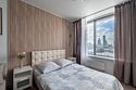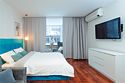телевизор, Wi-Fi, интернет, холодильник, фен, микроволновая печь, утюг, душевая кабина, банные полотенца, тапочки, двуспальная кровать, гладильная доска, шкаф для одежды, вешалки, зеркало, мини-бар, набор посуды, стиральная машина, чайник, унитаз, раковина, отопление, душ, вид на город, центральное кондиционирование, ламинат, кухонная посуда, стаканы, столовые приборы, стиральная машина и сушилка, стул, туалетные средства, туалет, панорамные окна, цифровое тв, мини-кухня, номер для некурящих, без питомцевВ номере